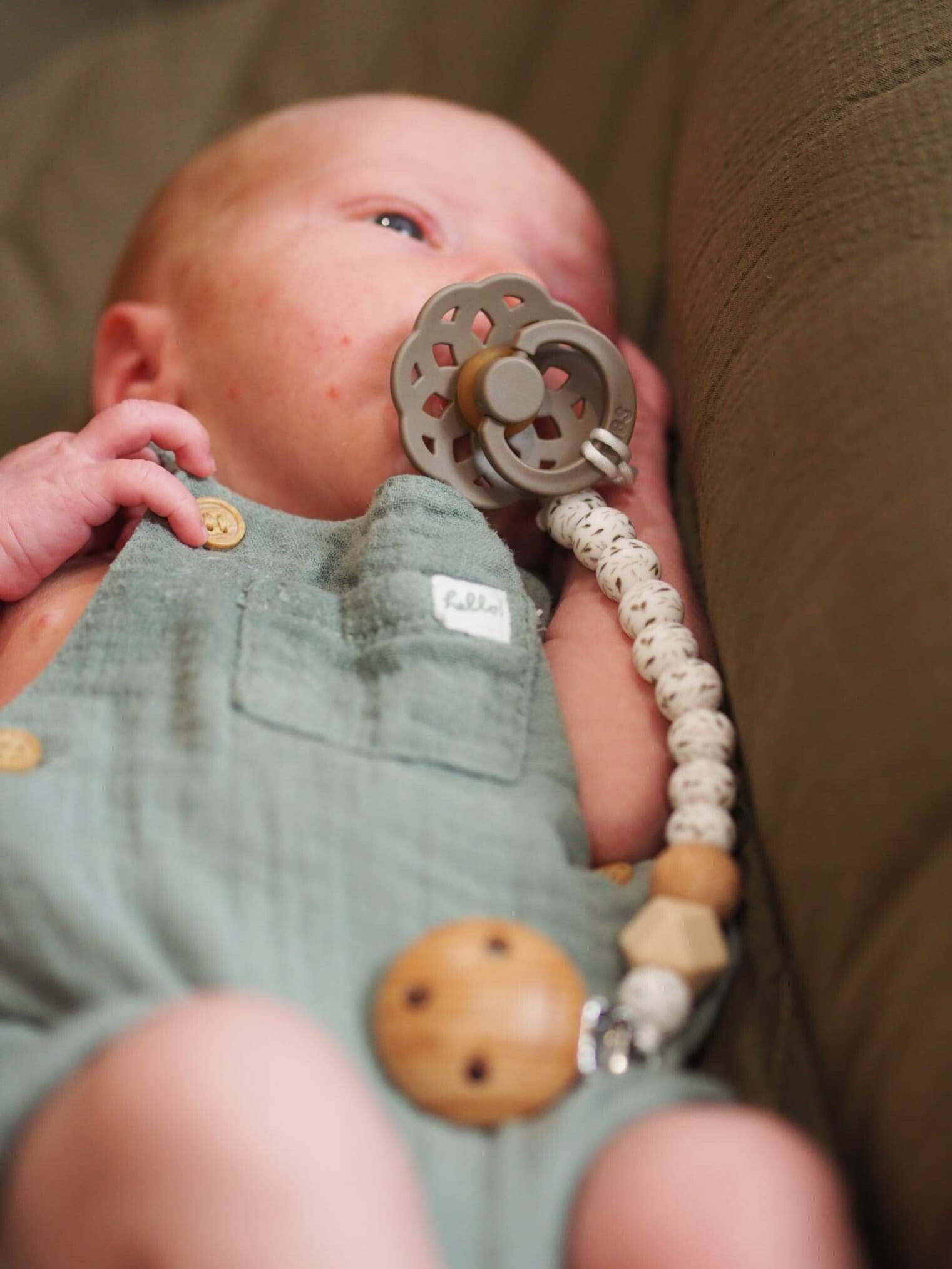 The 'Mon Fleur' Clip Silicone Beads, the pacifier clip with our own unique print.
