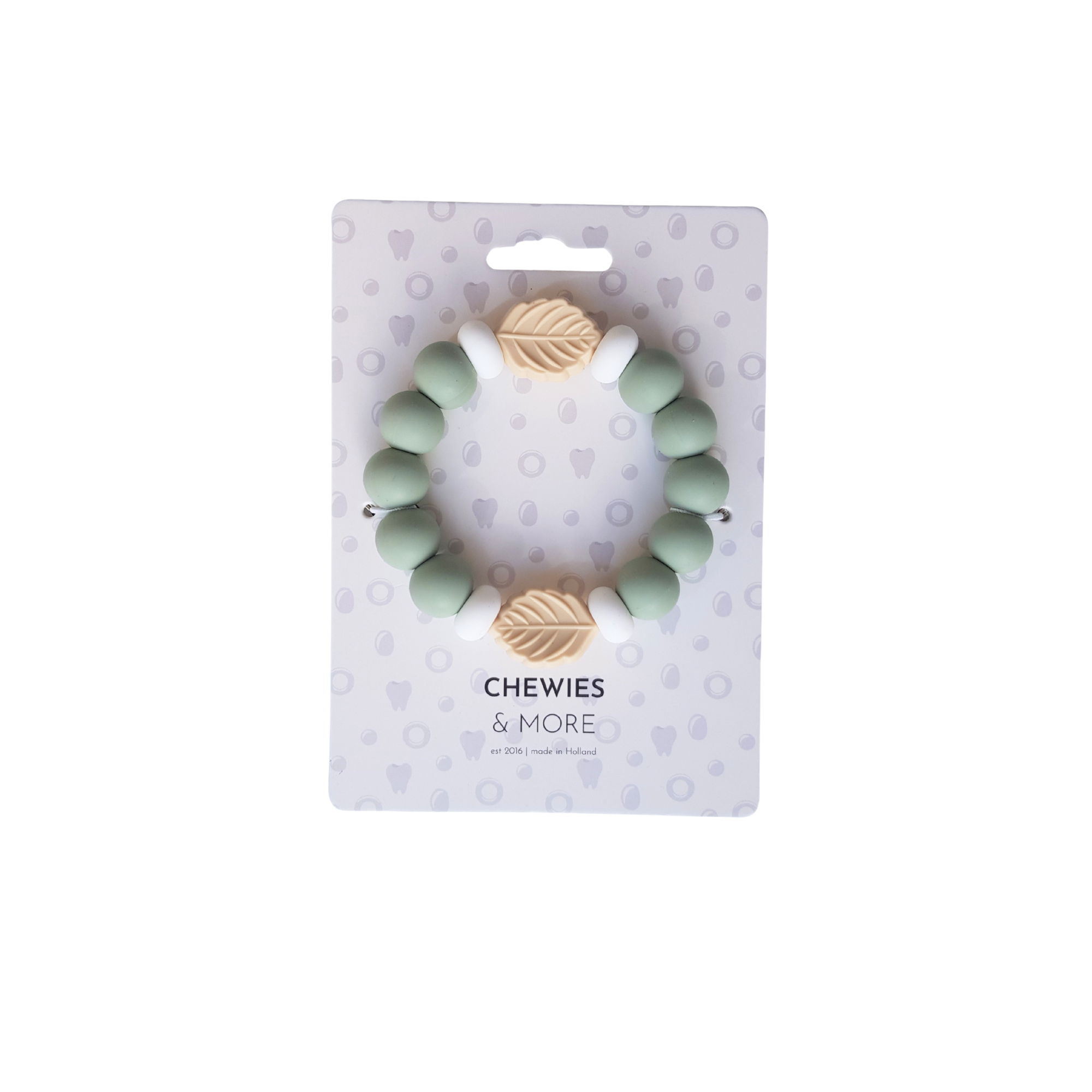 The 2nd Chewie we add to this Collection is the Cool Leaf Chewie. This Chewie is interesting for your little one because these beads contain different sizes and structures. Because it consists entirely of silicone, this Chewie can also be used in the fridge for use.