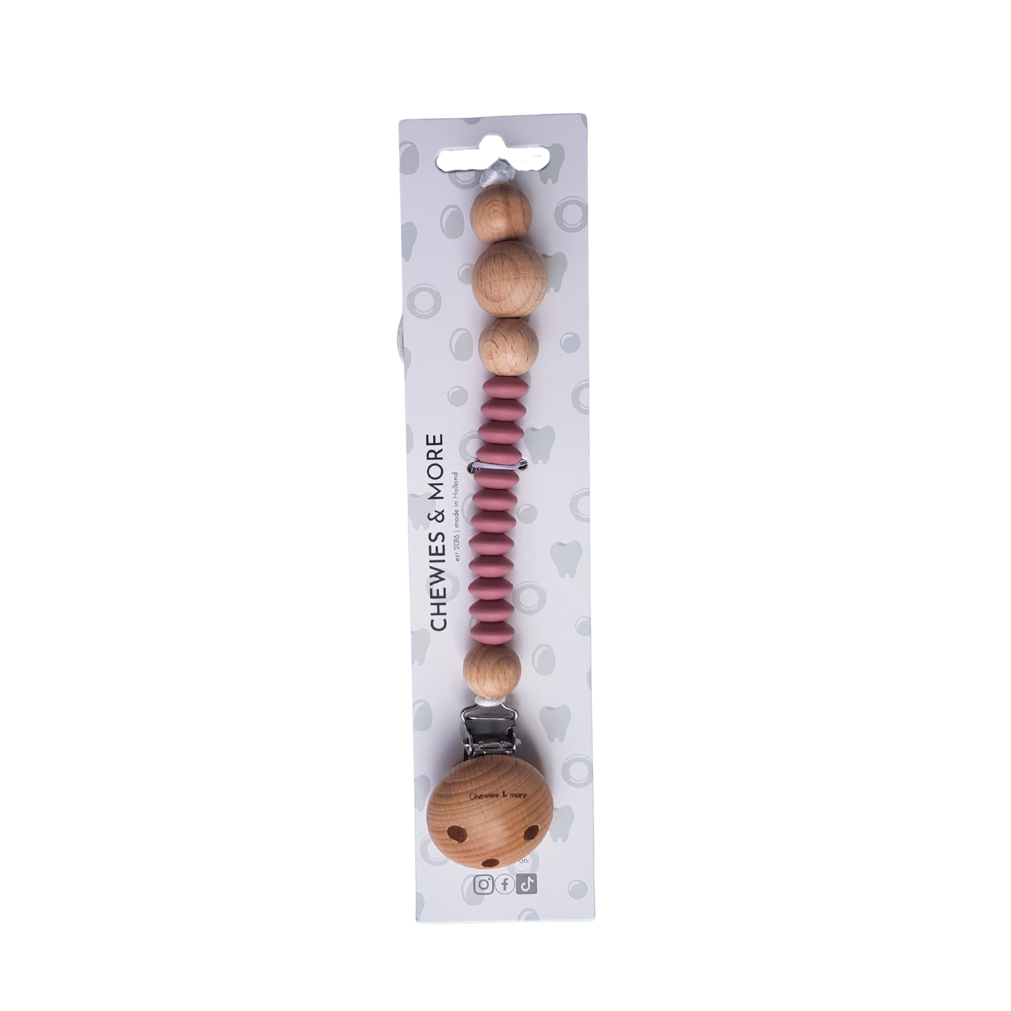 The silicone can be cleaned with water and mild soap. You can wipe the beech wood with a damp cloth and let it air dry. A baby wipe also works well for this! A Chewie cannot be boiled, put in the sterilizer or in the dishwasher.