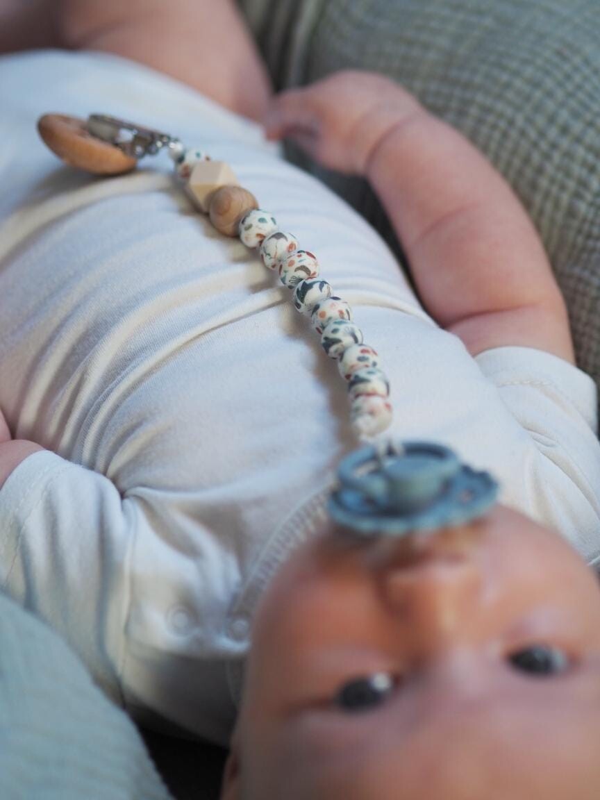 The silicone can be cleaned with water and mild soap. You can wipe the beech wood with a damp cloth and let it air dry. A baby wipe also works well for this! A Chewie cannot be boiled, put in the sterilizer or in the dishwasher.