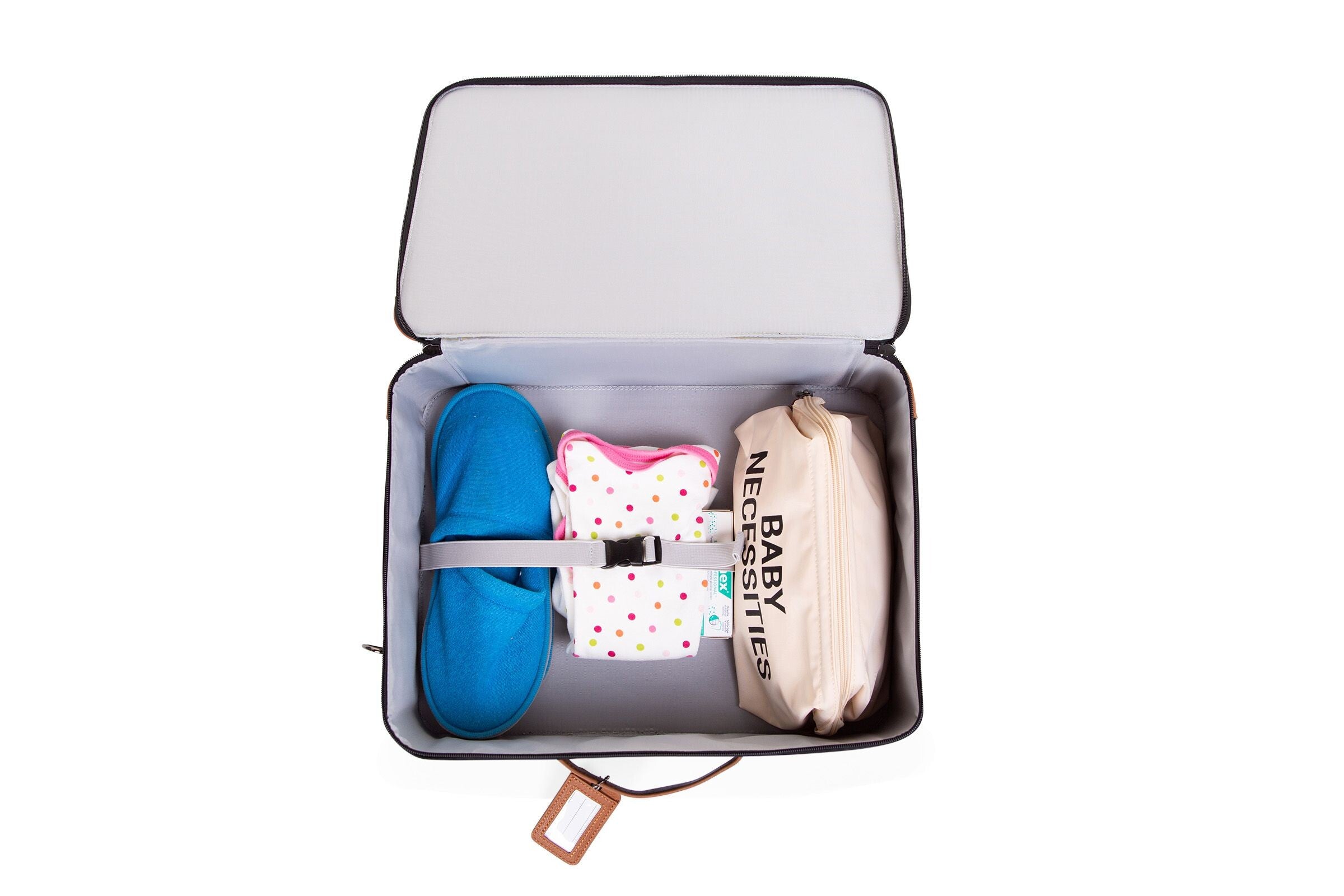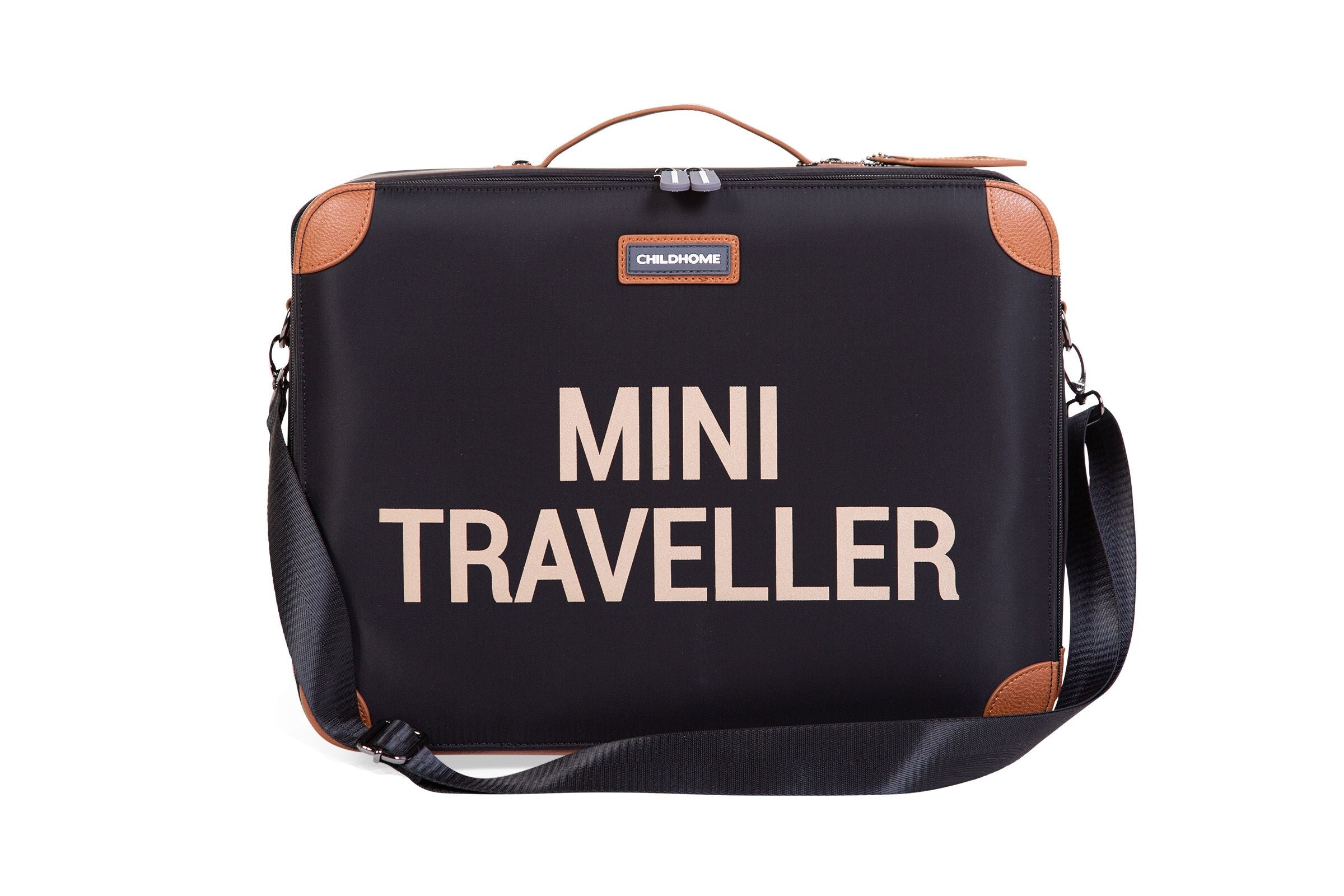 The beautiful travel case consists of 1 large compartment, but has a handy elastic inside to keep everything tidy. Perfect for one or more nights. The Mini Traveller comes with a handy carrying strap. A nice extra is the label to write down your kids name and personalize the Mini Traveller.