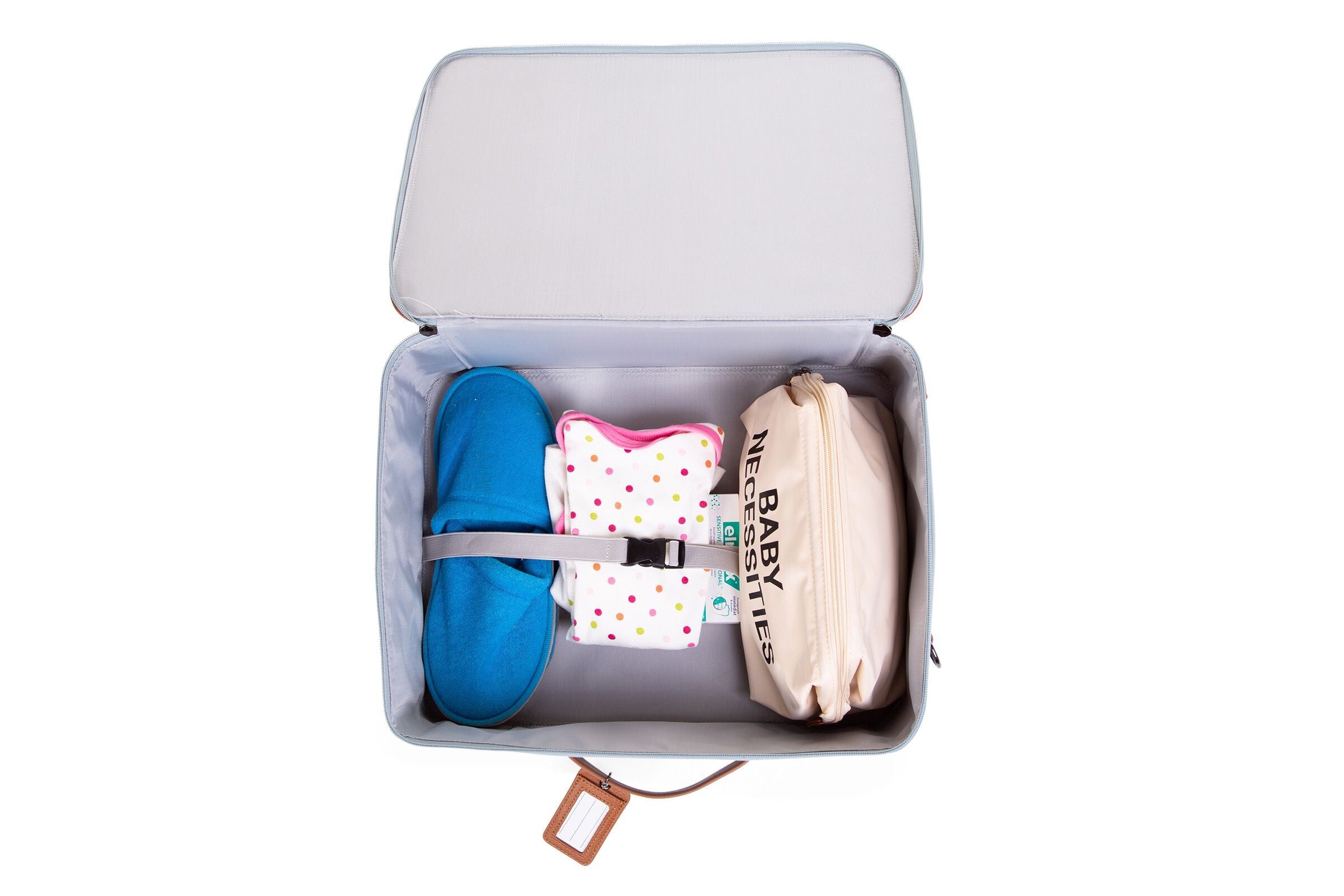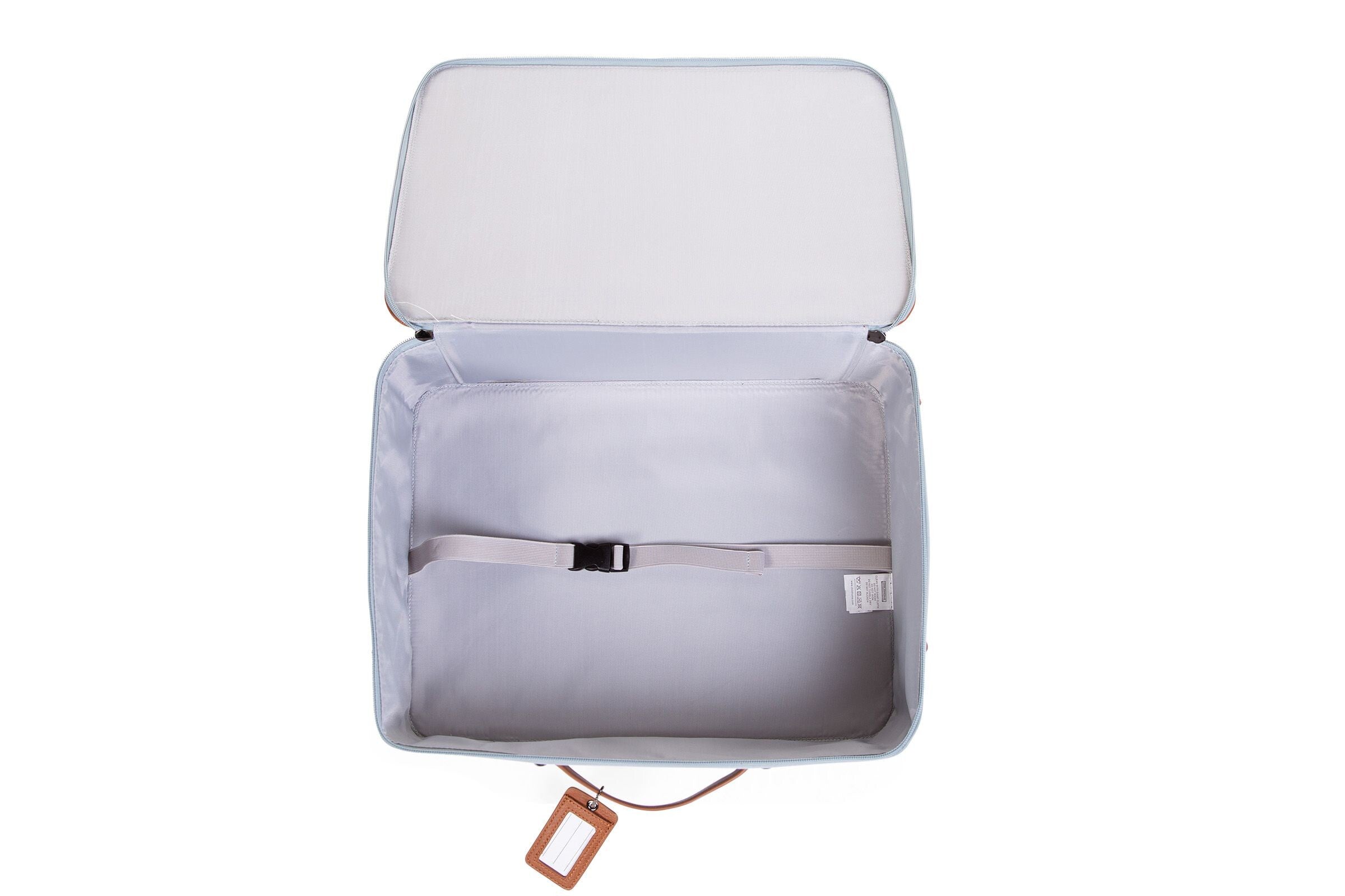The beautiful travel case consists of 1 large compartment, but has a handy elastic inside to keep everything tidy. Perfect for one or more nights. The Mini Traveller comes with a handy carrying strap. A nice extra is the label to write down your kids name and personalize the Mini Traveller.