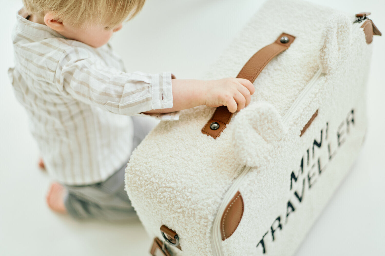 The Childhome Mini Traveller Kids Suitcase Teddy Offwhite is a charming, functional, and lightweight suitcase designed for young children. This cute and practical suitcase features a friendly teddy bear design, making it an exciting and fun companion for kids during trips or sleepovers. It's easy for children to handle and provides enough space for their belongings, helping them learn about packing and travel in a playful way.