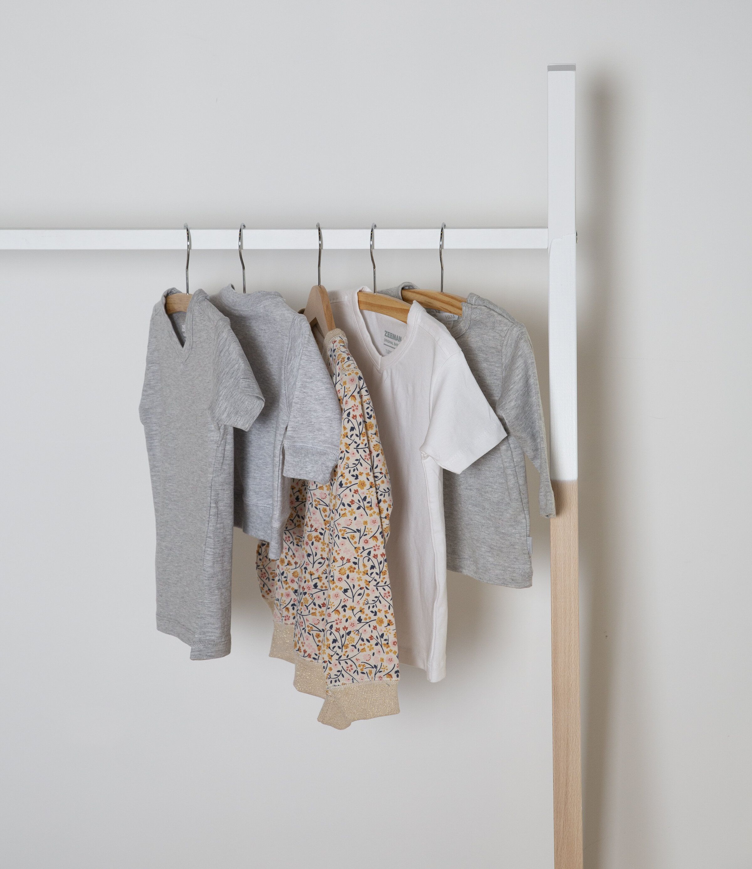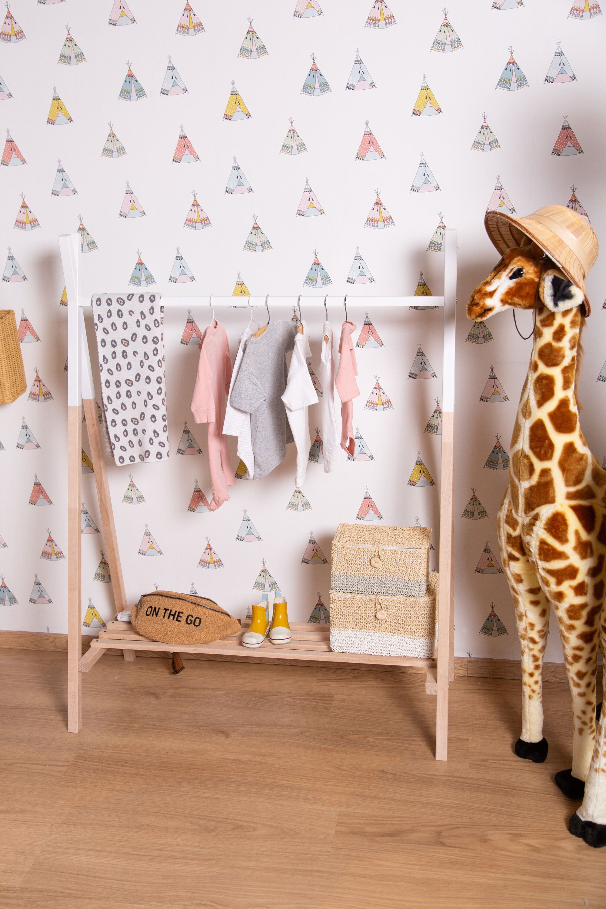This open wardrobe in fun tipi style is ideal for your little adventurer. The cloth stand has a shelf at the bottom and a hang bar at the top so you can hang up the clothes of your child.