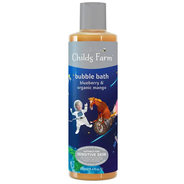 Childs Farm foaming bubble bath makes bubbly bubbles fragranced with blueberry & organic mango extract. Designed to clean and moisturise all skin types. Use Childs Farm blueberry & organic mango bubble bath in every bath for happy skin and fun bath times. , , Directions:, Add a generous slug to warm running water and relax or play in fragrant bubbles. If product gets in eyes, rinse well with water. If irritation occurs wash with copious amounts of water. If irritation continues, stop use. We recommend that you carry out a patch test 24 hours before using any product for the first time.
