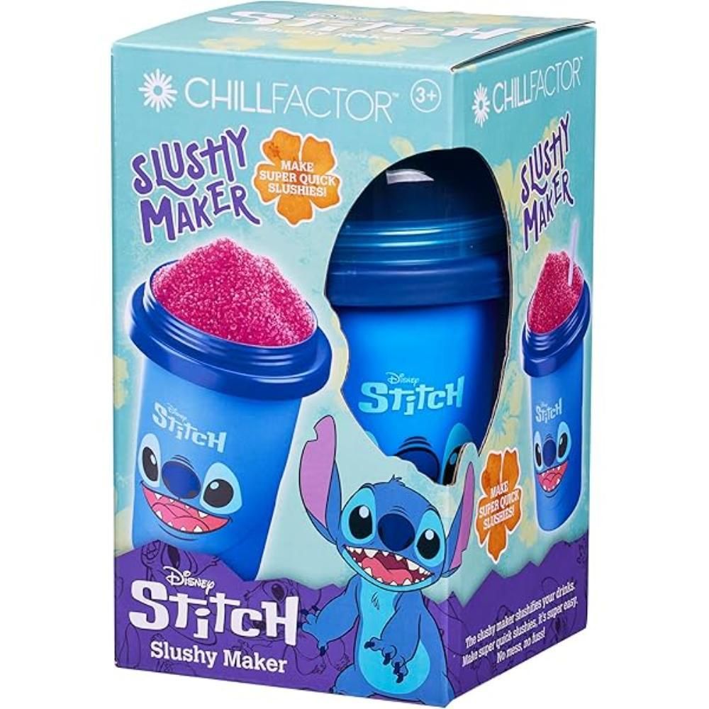 The ChillFactor Disney Stitch Slushy Maker- Stitch. Allows you to make delicious slushies in seconds! No ice, no blenders, no mess! Easy to use, all you have to do is put in the freezer, wait for it to freeze then add your preferred chilled drink and squeeze! Right before your eyes you will see slushy appear in seconds! Simply freeze, squeeze and enjoy!