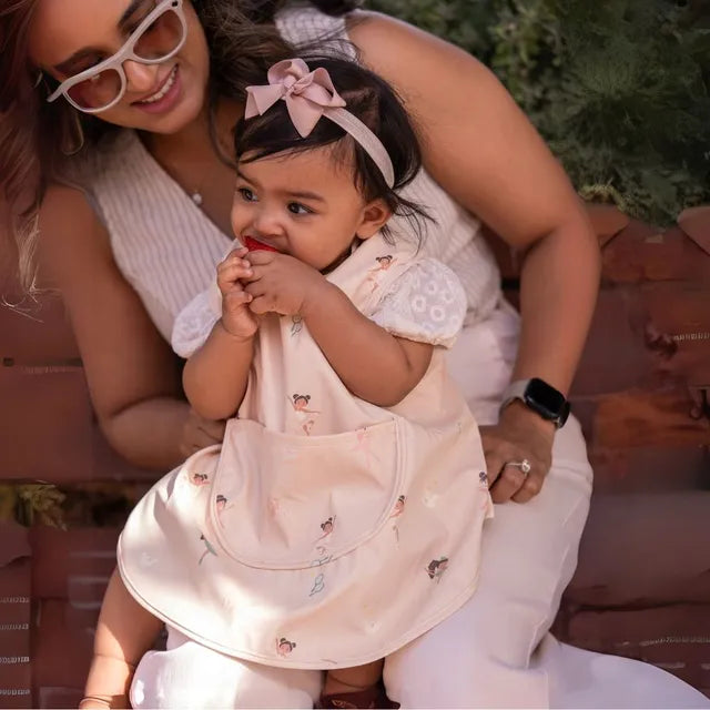 A soft and absorbent bib featuring a ballerina design to protect your little one from spills during mealtime. Keep your little one clean and stylish with the Citron Apron Bib. Designed for full coverage, this waterproof bib protects clothing from spills and stains while ensuring a comfortable fit. The lightweight, wipe-clean fabric makes it ideal for messy mealtimes, arts and crafts, or outdoor activities.