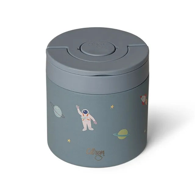 The Spaceship food jar is made from high-quality, BPA-free stainless steel, providing long-lasting durability and insulation. With a 350ml capacity, it’s perfectly sized for portioned meals, such as soups, yogurt, or fruit. The double-wall insulation keeps food hot for up to 6 hours or cold for up to 12 hours, making it a versatile option for hot or cold meals. The fun spaceship theme adds an adventurous touch to lunchtime, making it especially appealing to kids and space enthusiasts.