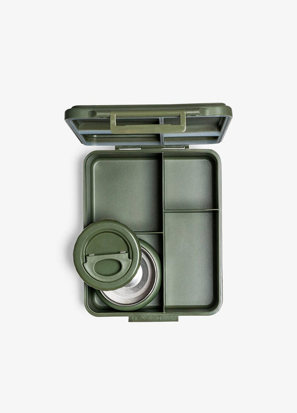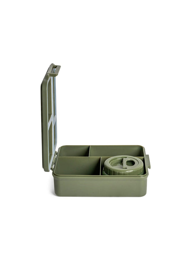 • Stores food in 4 separate compartments, in bento lunchbox style.