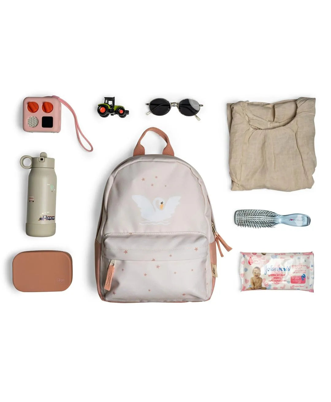 Small yet mighty, this Mini Backpack will pack in more than enough for your little kid's adventures and is easy to use when travelling during the summer. It has a main compartment with double-zipper closure and small front zipper pocket, so it can fit 1 250 ml water bottle, 1 mini stainless steel snack box, 2 small toys, kids sunglasses, wet wipes, 1 kids-friendly accessory and a change of clothes.