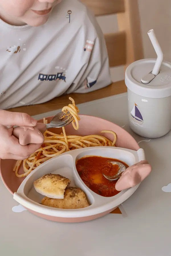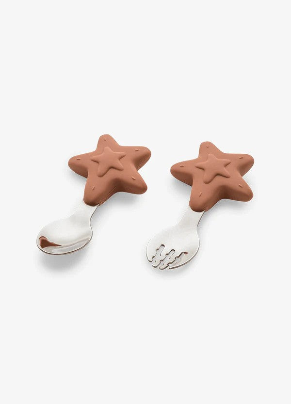 Our training fork and spoon set comes with rounded edges and large handles for an easy grip, making them a safe way for littles to learn all about scooping and piercing.