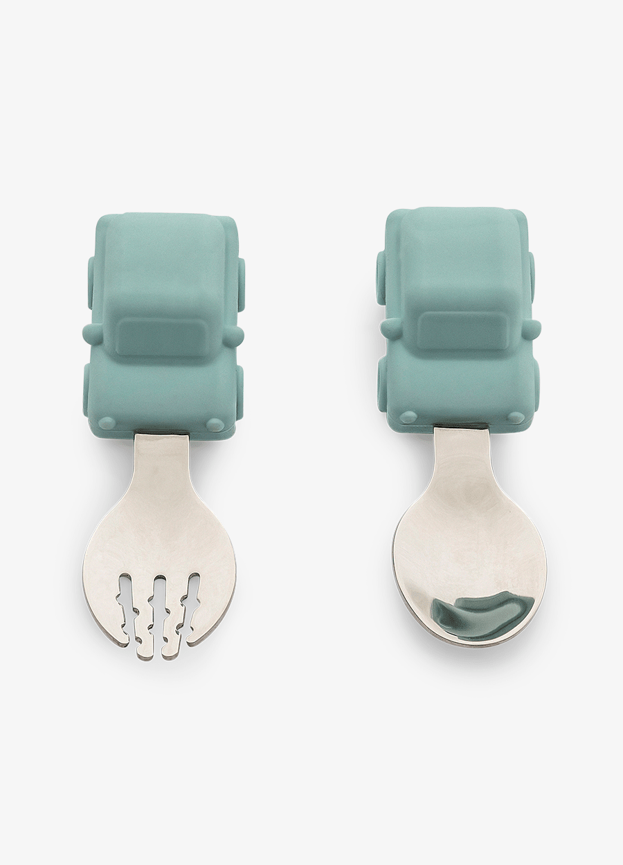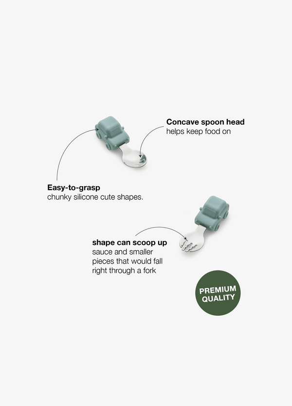 Our training fork and spoon set comes with rounded edges and large handles for an easy grip, making them a safe way for littles to learn all about scooping and piercing.