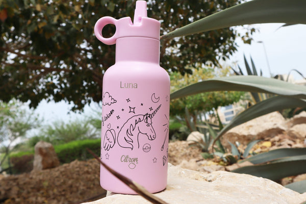 Our kids water bottles cover the many levels of a child's thirst. This bottle adds 100ml to our smallest sized bottle, making it still a model product for smaller hands. The bottom is enabled with a QR code to make sure the kids drink bottle never gets lost. If you want a mid-sized bottle to quench your kid's thirst, this might just be your best water bottle for kids.