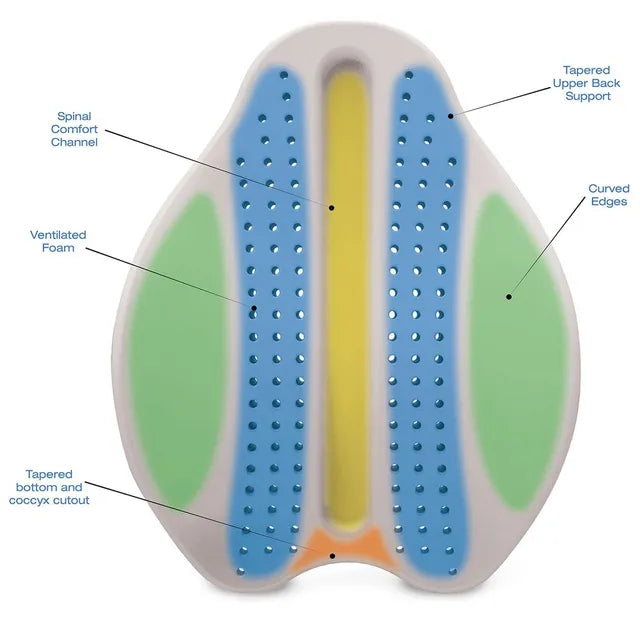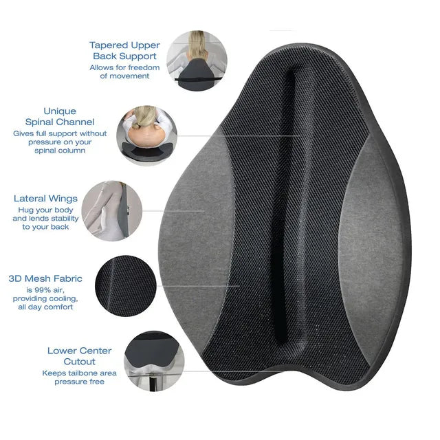 - UNIQUE SHAPE FOR MOBILITY ƒ?? Most lumbar pillows have a bulky shape that can be too thick or extremely oversized for the chair that you are trying to use it for. Our Freedom Back is shaped with tapered edges and a tailbone cutout to allow for full mobility. This is ideal for working at the office or getting in and out of the car. The sleek back cover is made from a stretchy mesh fabric and will always move with you.