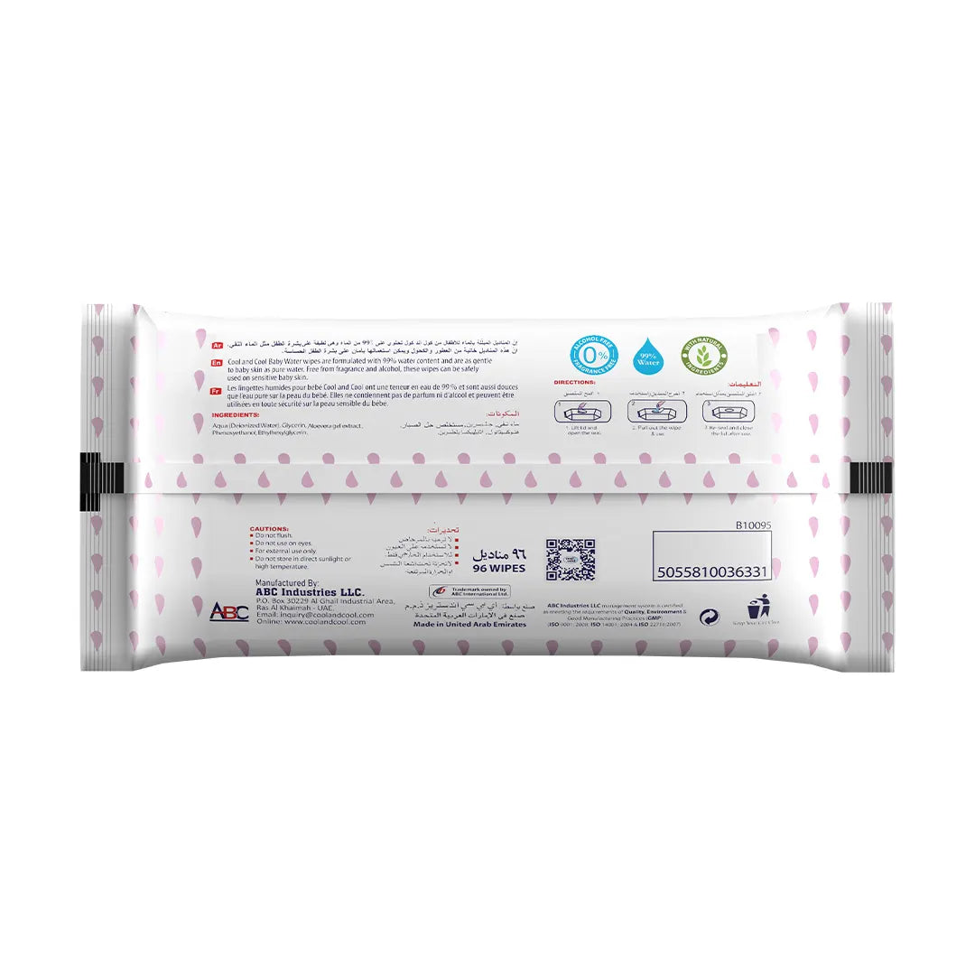 Cool & Cool Aqua Wipes are crafted with the utmost care, ensuring they are 99% water-based and completely alcohol-free, making them perfect for ultra-sensitive skin. These wipes are gentle enough for everyday use, providing a soothing and refreshing experience. The absence of fragrance ensures that the wipes are safe for even the most delicate skin types, including babies.