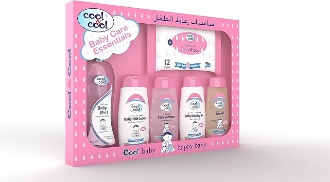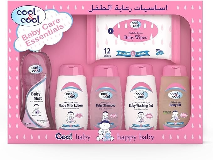 The Cool & Cool Baby Care Essential Kit is a complete package of six essential baby care items, specifically designed for newborns and their mothers. This thoughtfully curated kit includes Baby Lotion (100ml), Baby Washing Gel, Moisturizing Cream, Shampoo, Baby Oil, and Baby Wipes, all formulated to be mild and gentle on delicate baby skin.