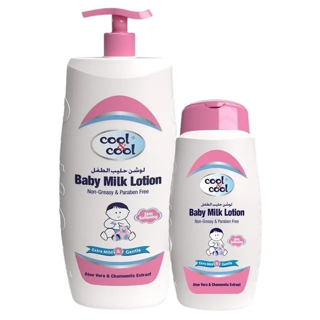 Cool & Cool introduces Baby Milk Lotion, a tender solution for your baby's skin. Enriched with Vitamin E, Aloe Vera, and Chamomile Extract, this lotion nurtures while softening your baby's delicate skin. The non-greasy formula absorbs quickly, leaving no residue. Paraben-free and hypoallergenic, it ensures safety and gentleness for daily use.