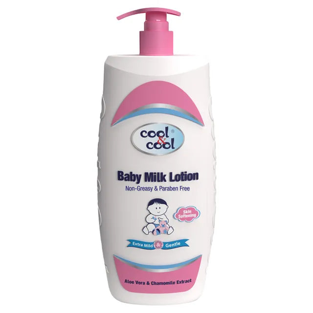 Cool & Cool introduces Baby Milk Lotion, a tender solution for your baby's skin. Enriched with Vitamin E, Aloe Vera, and Chamomile Extract, this lotion nurtures while softening your baby's delicate skin. The non-greasy formula absorbs quickly, leaving no residue. Paraben-free and hypoallergenic, it ensures safety and gentleness for daily use.