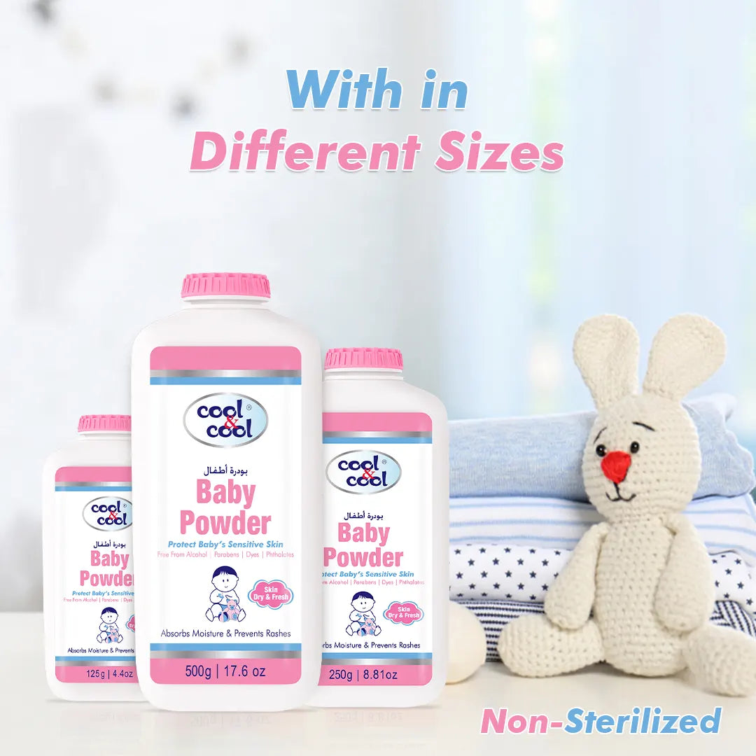 Cool & Cool Baby Powder is meticulously crafted with skin-friendly ingredients, ensuring your baby feels calm, dry, and velvety soft at all times. It creates a thin, friction-free layer that soothes, prevents nappy rashes, and reduces skin irritation caused by rubbing or chafing.