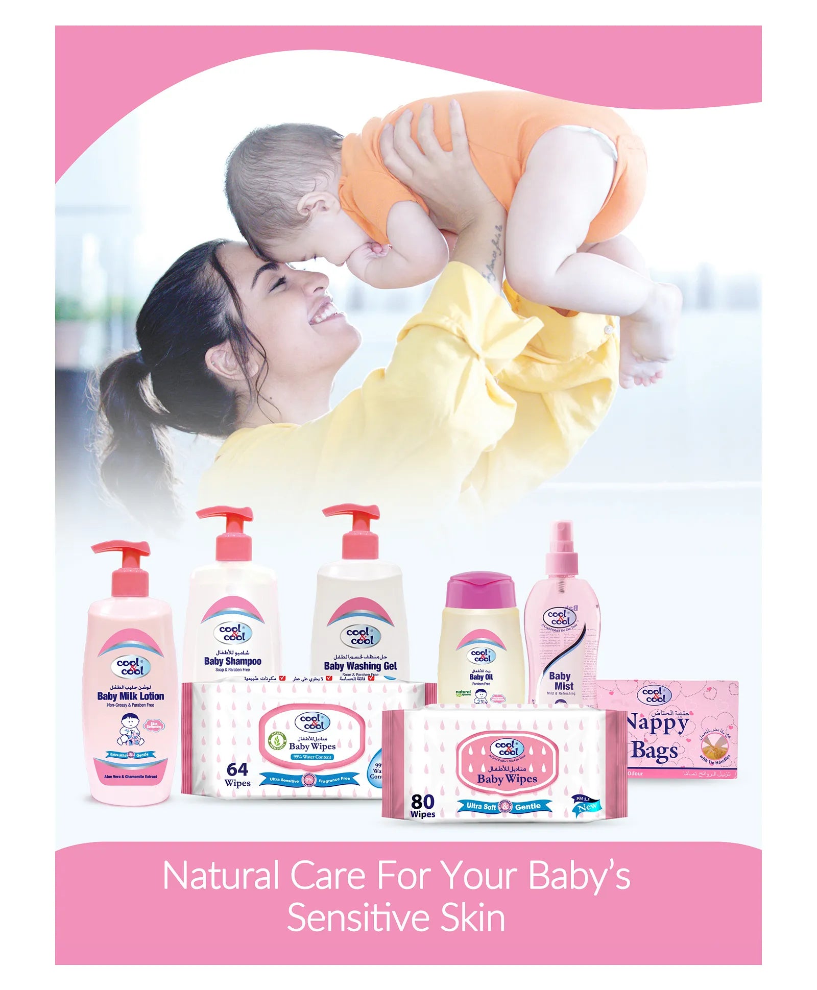 Cool & Cool's range of premium quality baby products will ensure natural care for your baby's sensitive skinCool & Cool Baby Wipes are ultra-soft and have a subtle scent, leaving little bottoms smelling clean and fresh. Our baby wipes are handy in any situation: at change time, at meal times and at play times, whether you’re at home or outdoors. The wipes are also alcohol free and are suitable to be used on sensitive skin