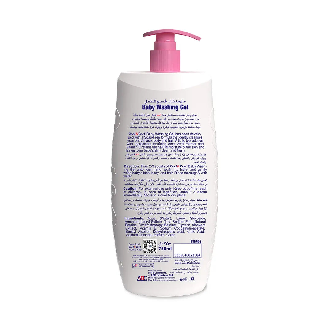 Cool & Cool presents Baby Washing Gel, a gentle and effective solution for your little one's bath time. This dye-free formula is tear-free, alcohol-free, and paraben-free, ensuring the utmost safety for delicate skin. Enriched with Vitamin E and Aloe Vera extract, it provides moisturization and nourishment while maintaining an extra mild formula. From head to toe, it offers a gentle cleansing experience, leaving your baby's skin feeling soft and smooth.