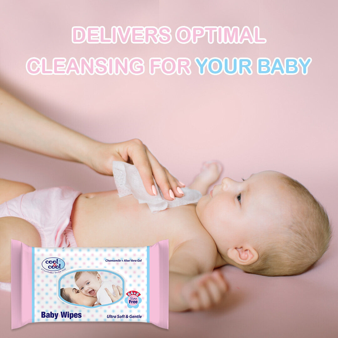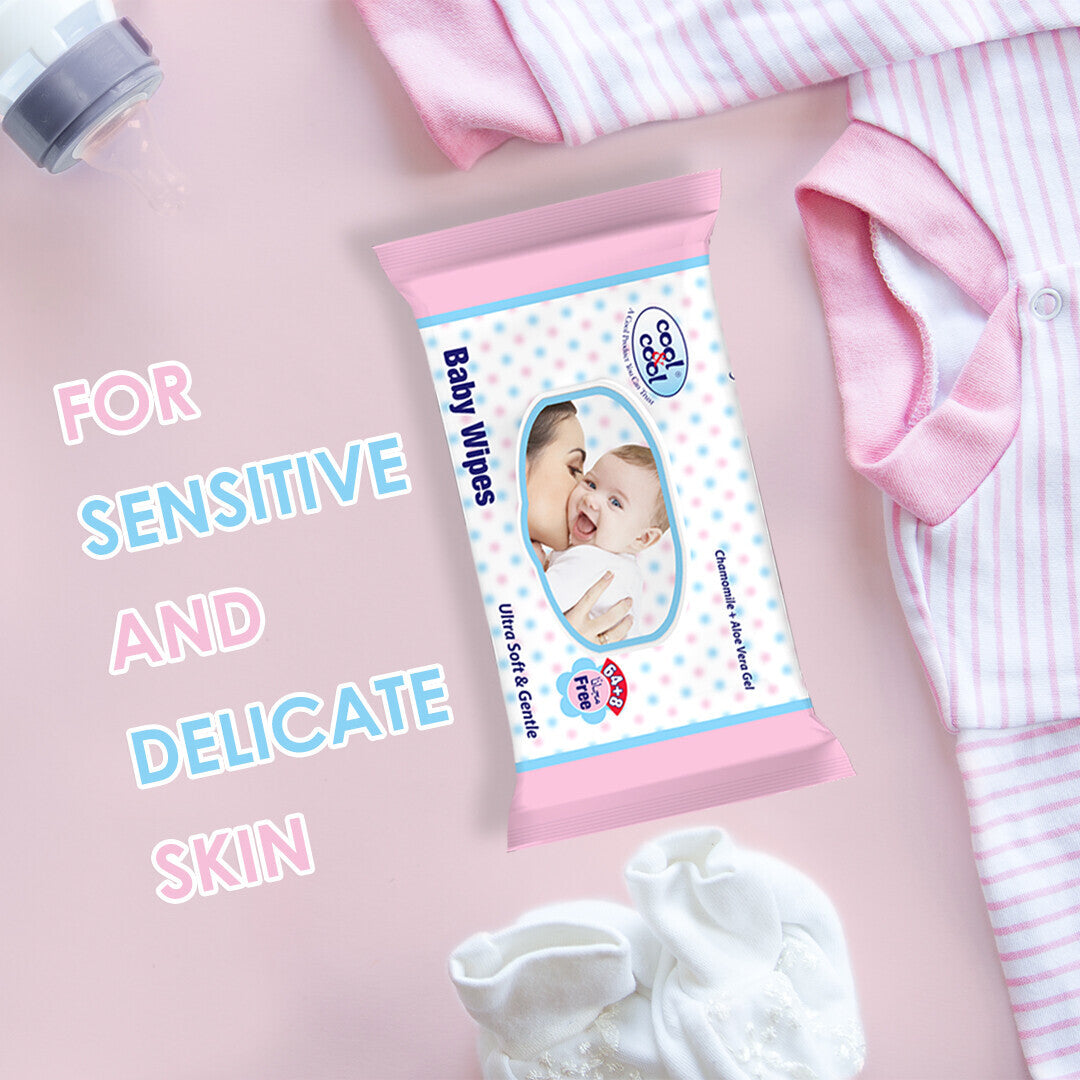 Cool & Cool presents Baby Wipes, a must-have for gentle and effective cleansing. Ensuring you always have wipes on hand for your baby's needs. Crafted with care, these wipes are alcohol-free and paraben-free, making them safe for sensitive and delicate skin. Enriched with Vitamin E and Aloe Vera, they provide nourishment and soothing comfort with every use. Ultra soft and gentle, these wipes offer a thorough cleanse while maintaining the utmost care for your baby's skin.