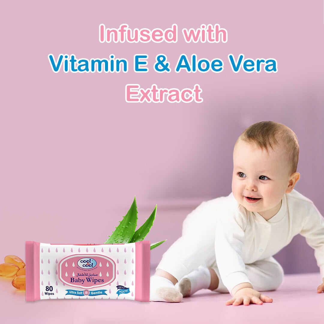 Cool & Cool presents Baby Wipes, a must-have for gentle and effective cleansing. Ensuring you always have wipes on hand for your baby's needs. Crafted with care, these wipes are alcohol-free and paraben-free, making them safe for sensitive and delicate skin. Enriched with Vitamin E and Aloe Vera, they provide nourishment and soothing comfort with every use. Ultra soft and gentle, these wipes offer a thorough cleanse while maintaining the utmost care for your baby's skin.
