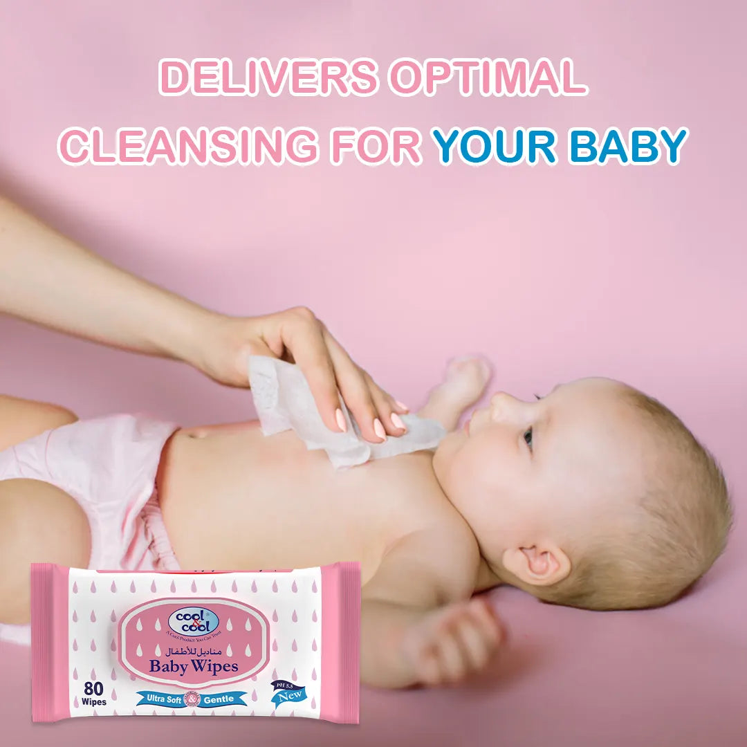 Cool & Cool presents Baby Wipes, a must-have for gentle and effective cleansing. Ensuring you always have wipes on hand for your baby's needs. Crafted with care, these wipes are alcohol-free and paraben-free, making them safe for sensitive and delicate skin. Enriched with Vitamin E and Aloe Vera, they provide nourishment and soothing comfort with every use. Ultra soft and gentle, these wipes offer a thorough cleanse while maintaining the utmost care for your baby's skin.