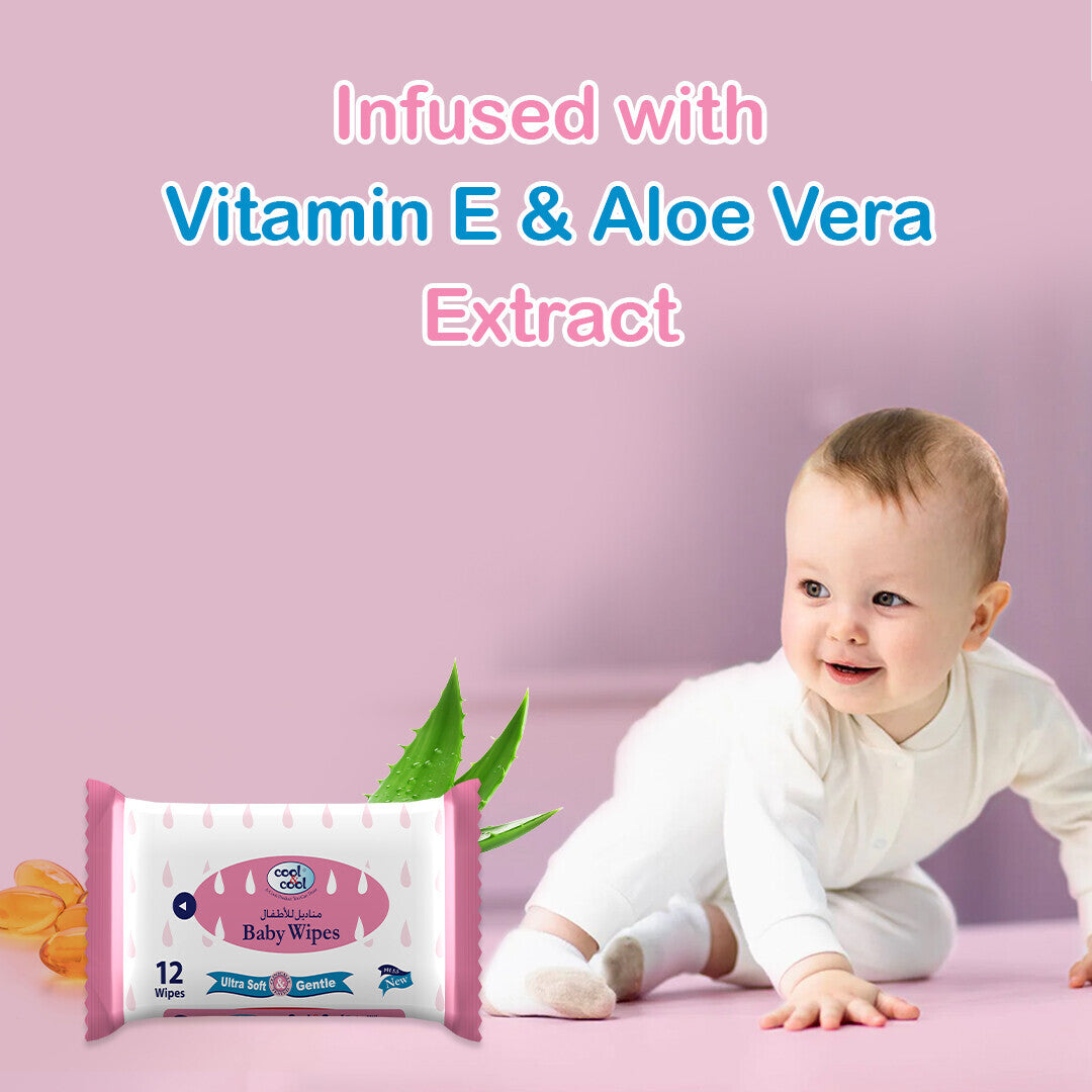 Cool & Cool presents Baby Wipes, a must-have for gentle and effective cleansing. Ensuring you always have wipes on hand for your baby's needs. Crafted with care, these wipes are alcohol-free and paraben-free, making them safe for sensitive and delicate skin. Enriched with Vitamin E and Aloe Vera, they provide nourishment and soothing comfort with every use. Ultra soft and gentle, these wipes offer a thorough cleanse while maintaining the utmost care for your baby's skin.