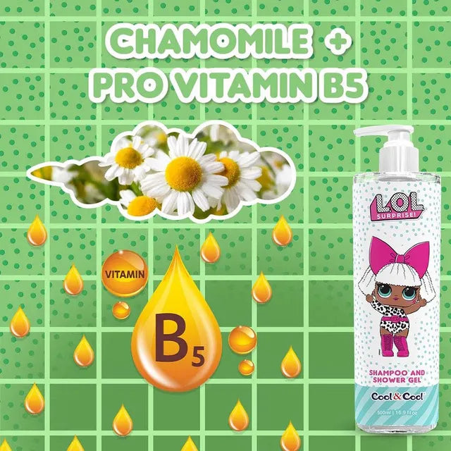 Cool & Cool - LOL Surprise is a fun and gentle 2-in-1 shampoo and shower gel with calming chamomile and nourishing pro-vitamin B5, making bath time a joyful and nurturing experience for kids.