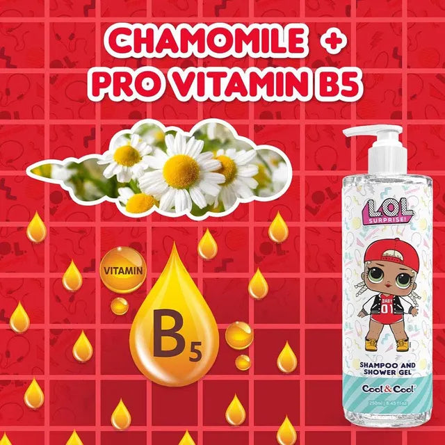 Cool & Cool - LOL Surprise is a fun and gentle 2-in-1 shampoo and shower gel with calming chamomile and nourishing pro-vitamin B5, making bath time a joyful and nurturing experience for kids.