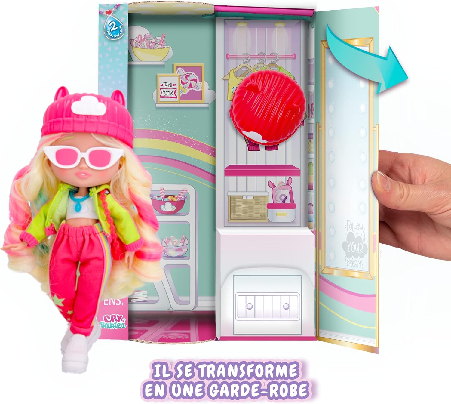 Meet the new Cry Babies! BEST FRIENDS FOREVER, Hannah! Now your favourite character from Cry Babies Magic Tears has grown up and is a teen! She is 13 years old and has many adventures. Hannah has a long nilon hair, glass eyes and articulated body! She wears a trendy and fashion outfit with her special necklace! Unbox and discover her closet together with 9+ surprises: 3 pieces of clothing, a bag, a hat, a pair of shoes, a sunglasses and a necklace!