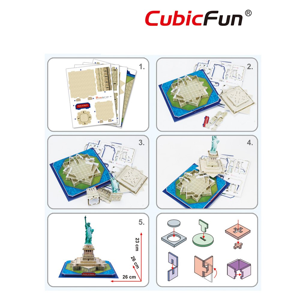 CubicFun 3D Puzzle Statue of Liberty - The Statue of Liberty is a colossal neo classical sculpture on Liberty Island in the middle of New York Harbor, in Manhattan, New York City. The statue is of a robed female figure representing Libertas, the Roman goddess of freedom, who bears torch and tabula ansata upon which is inscribed the date of the American Declaration of Independence, July 4, 1776. A broken chain lies at her feet.