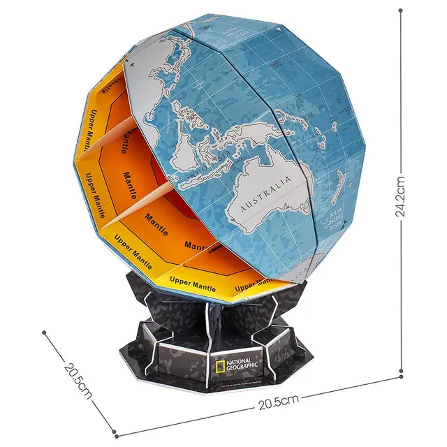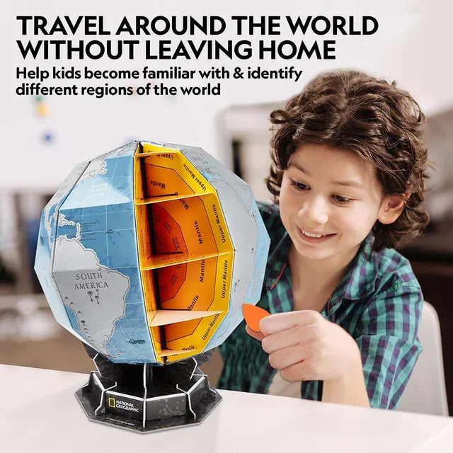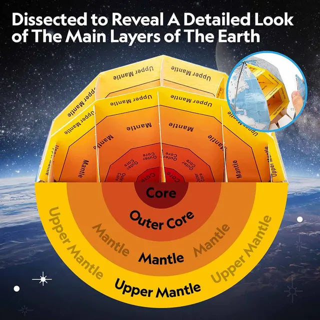 Travel around the world without leaving home. Help kids become familiar with and identify different regions of the world. Dissected to reveal a detailed look of the main layers of the Earth.