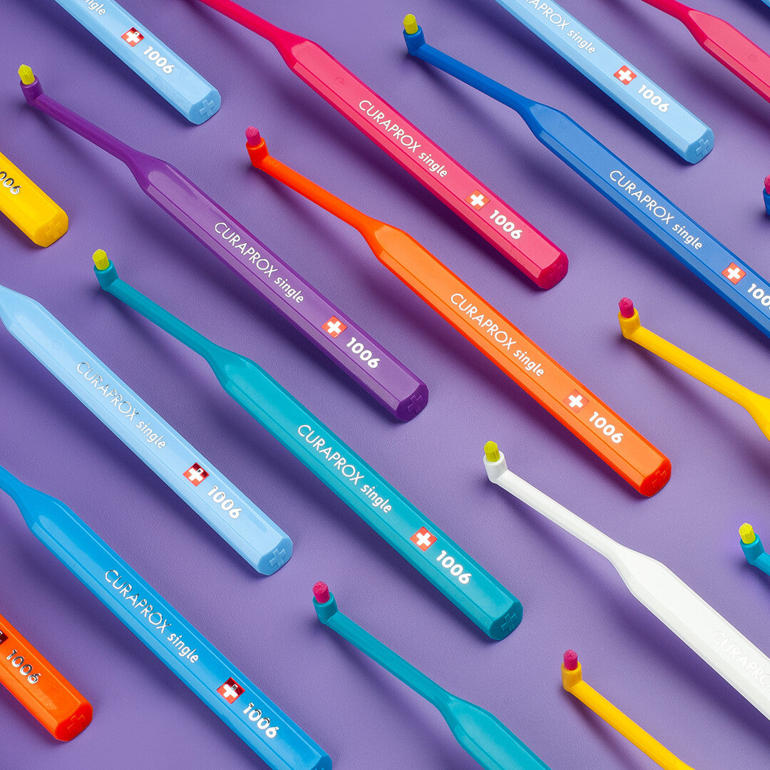 The Curaprox CS 1006 is a single-tuft brush designed for exceptional care around implants, braces, bridges, or isolated teeth. With a perfectly rounded 6 mm tuft of ultra-soft Curen filaments, it gently follows the gum line and adapts to every contour — ensuring thorough cleaning without trauma.