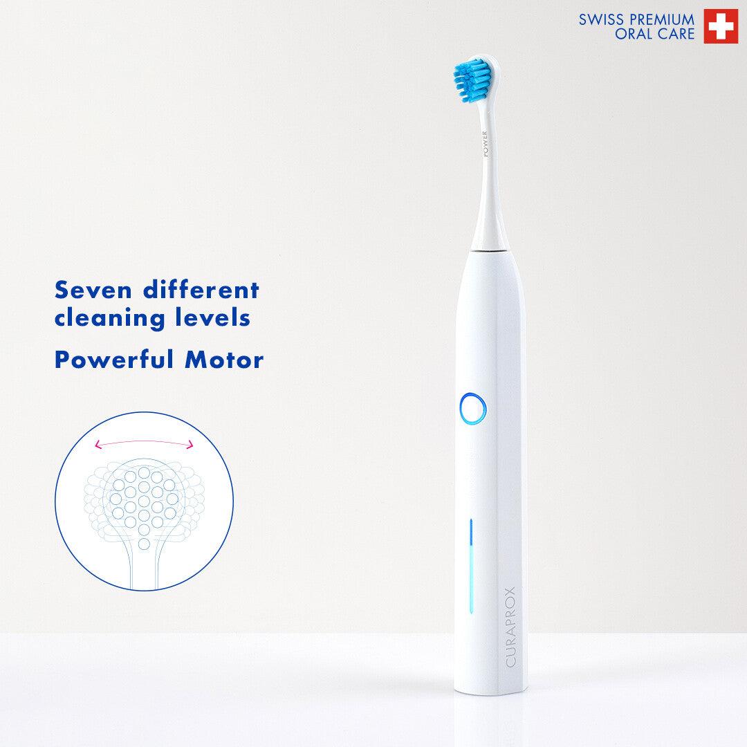 It features seven intensity levels to suit every need, from sensitive gums to deep cleaning. The hydrodynamic effect helps flush out plaque and bacteria from between teeth, while the ergonomically designed Curacurve brush heads ensure effortless access to every corner of your mouth.