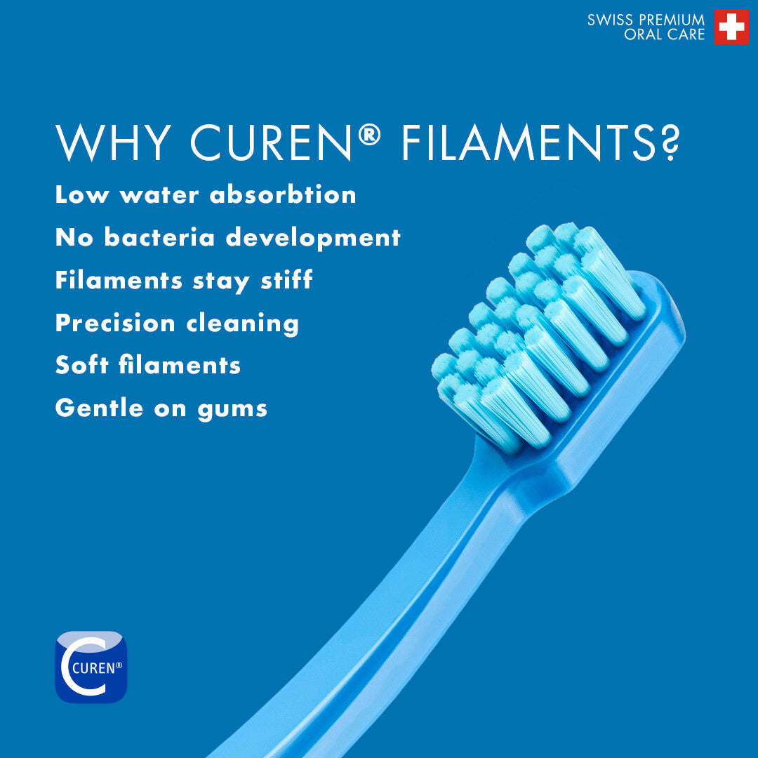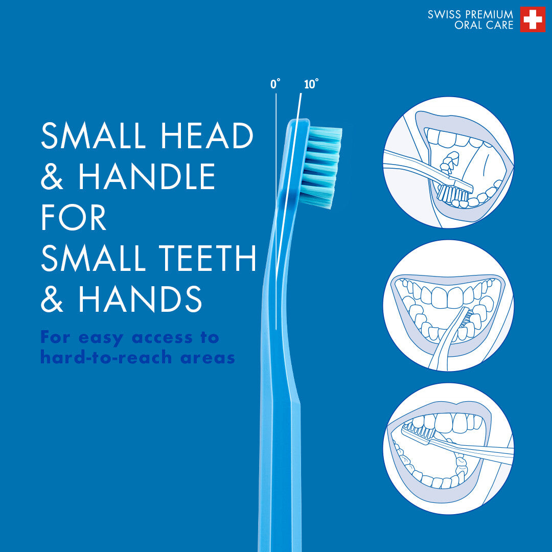 The Curaprox Kids Toothbrush is the ultimate brush for children aged 4 to 12, making dental care fun and effective. With 5,500 ultra-soft Curen filaments with a compact brush head, this toothbrush ensures a gentle yet thorough cleaning that removes plaque while being kind to sensitive gums. Available in six vibrant colors, it’s designed to make brushing an enjoyable experience for kids, encouraging them to take good care of their teeth every day. The ergonomic octagonal handle fits perfectly in little hands, allowing for a comfortable and controlled grip during brushing.