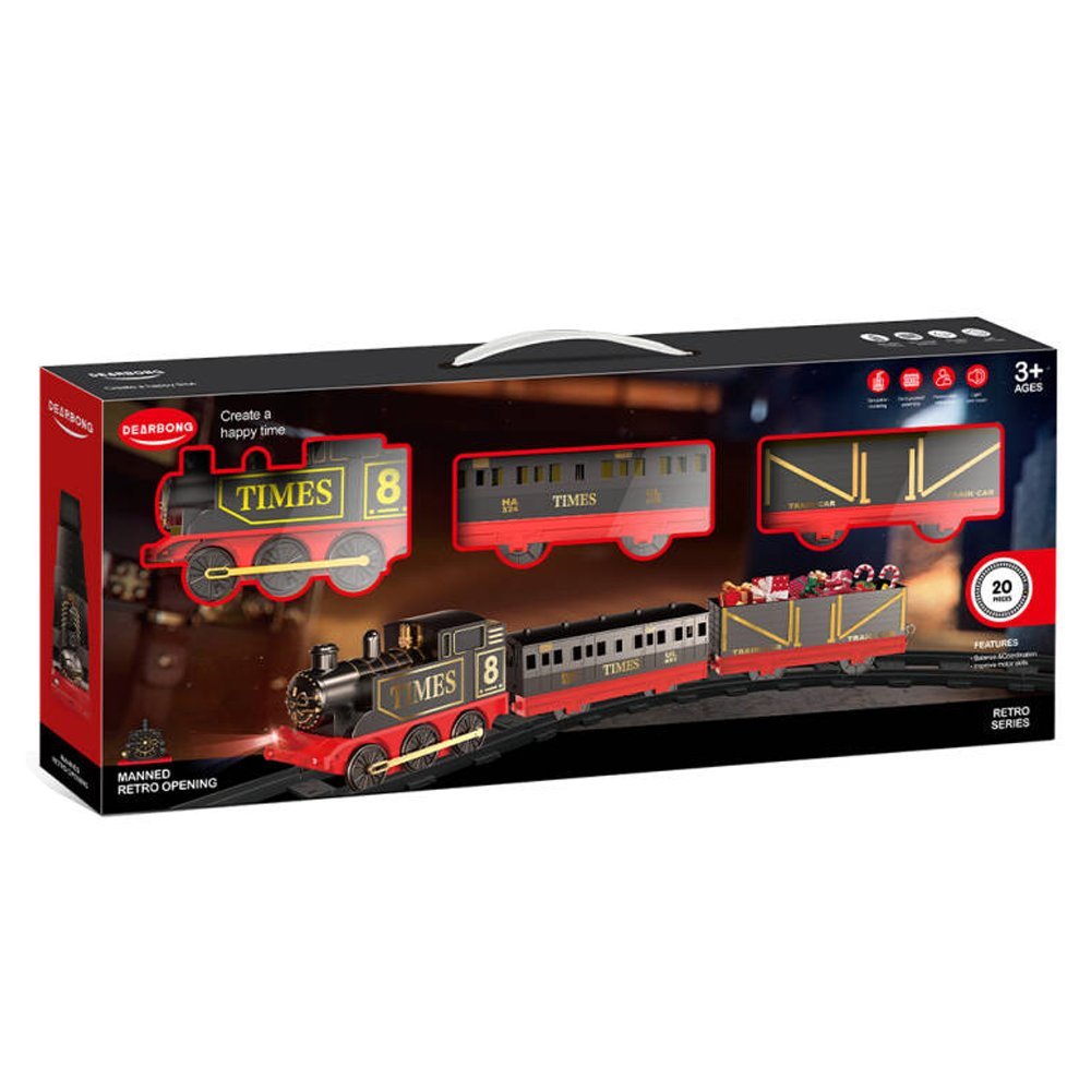 - Christmas Train Set. Product include a classic Christmas train locomotive engine, coal carriage, passenger carriage and cargo vehicle, curved and straight tracks.