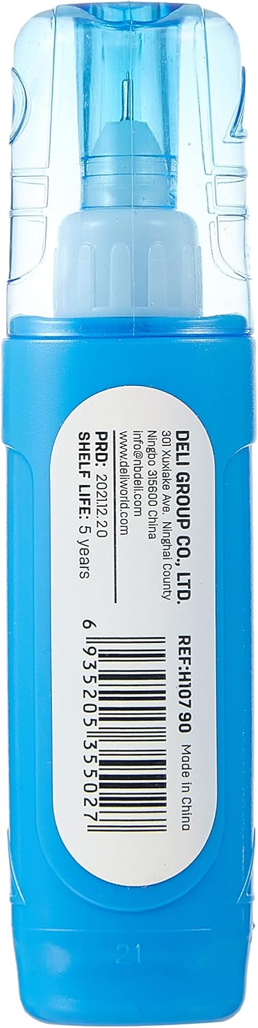 The Deli EH10790 is a correction pen that holds 12ml of white, non-toxic, and environmentally friendly fluid. It features a fine-point steel tip for precise and detailed corrections. The fluid dries quickly, making it a good option for both right-handed and left-handed users. The pen has a convenient pocket clip, making it easy to carry.