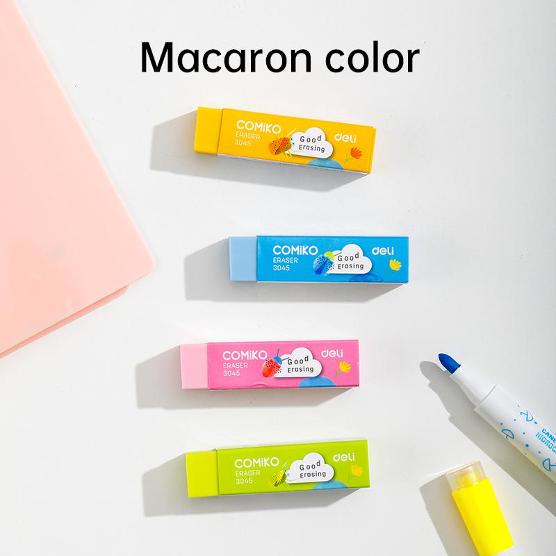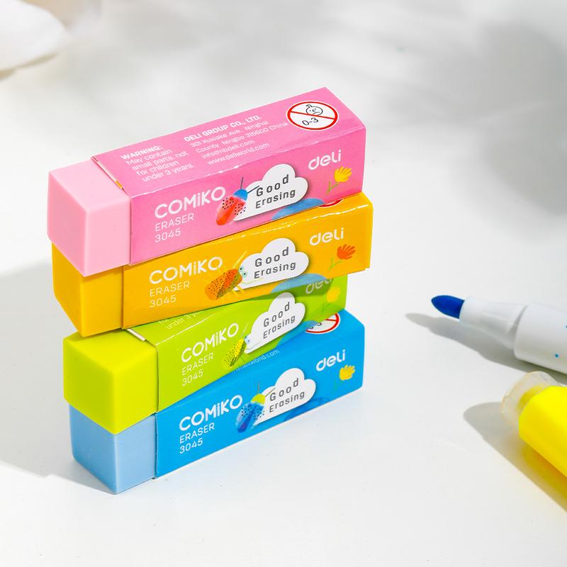The Deli Eraser 3045-MT is a simple and effective tool for correcting mistakes on paper. This convenient blister pack contains four rectangular erasers, each measuring 60mm x 15mm x 15mm, in a variety of vibrant, metallic colors. These erasers are a practical and reliable choice for students, artists, and office workers. They are made from high-quality, non-toxic materials that provide a clean and smudge-free erasing experience, leaving no residue behind.