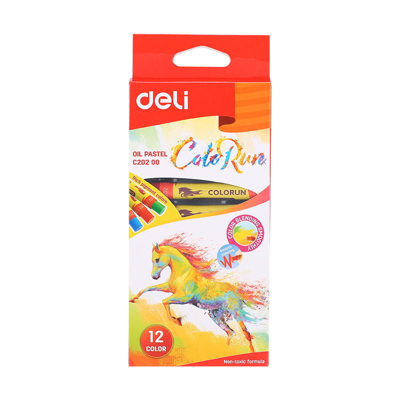 The Deli EC20200 is a set of 12 assorted oil pastels designed for smooth and effortless coloring. These pastels are known for their rich pigments and creamy texture, which allows for excellent color blending and layering. They are a great introductory set for artists and students, and their non-toxic, washable formula with a paper wrapper ensures a clean and safe art experience.