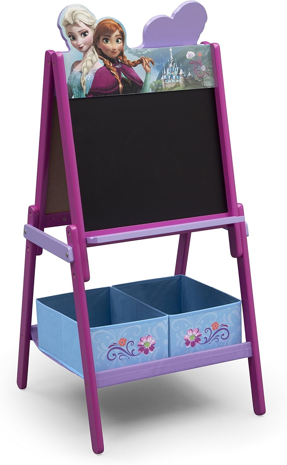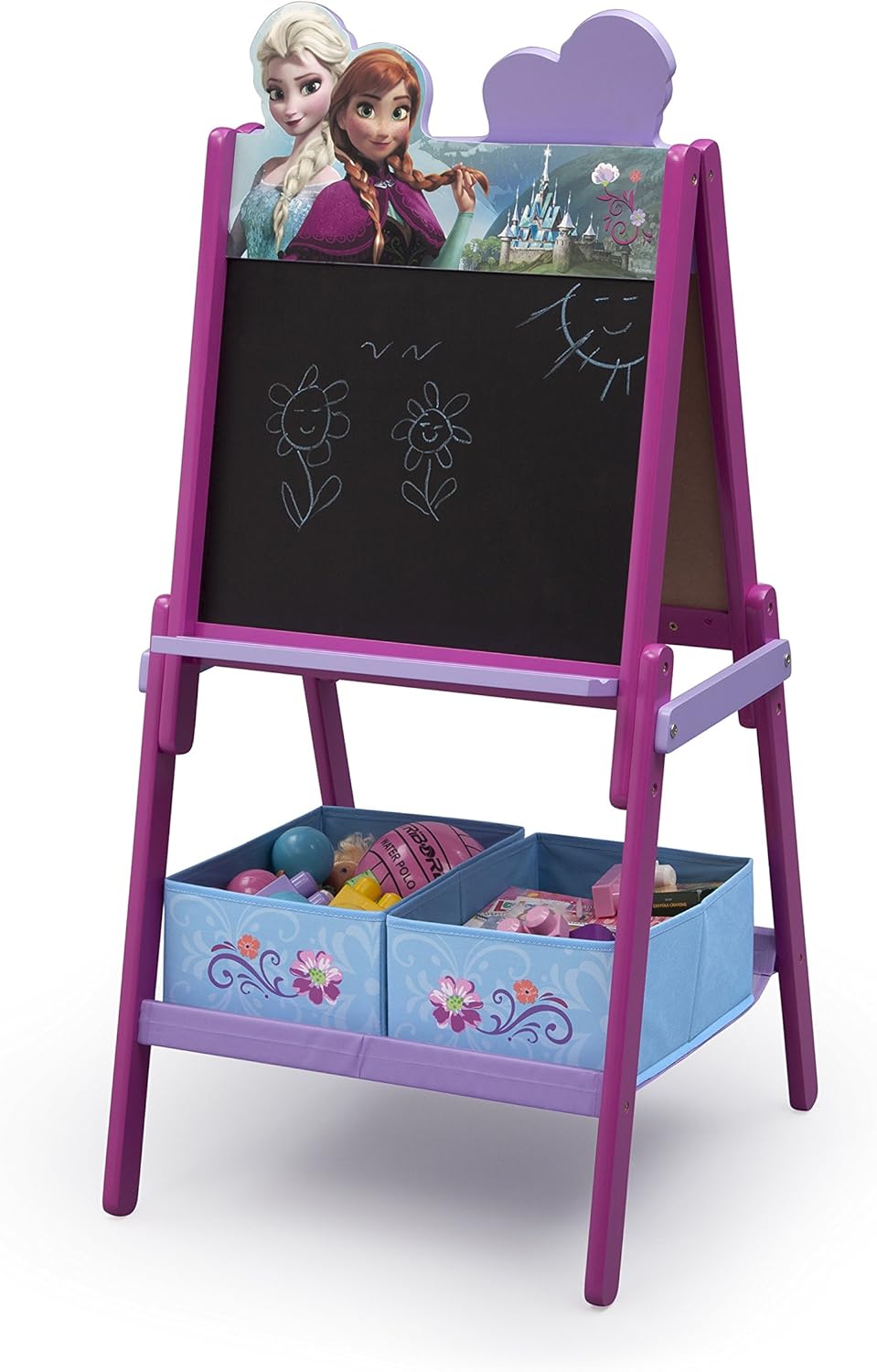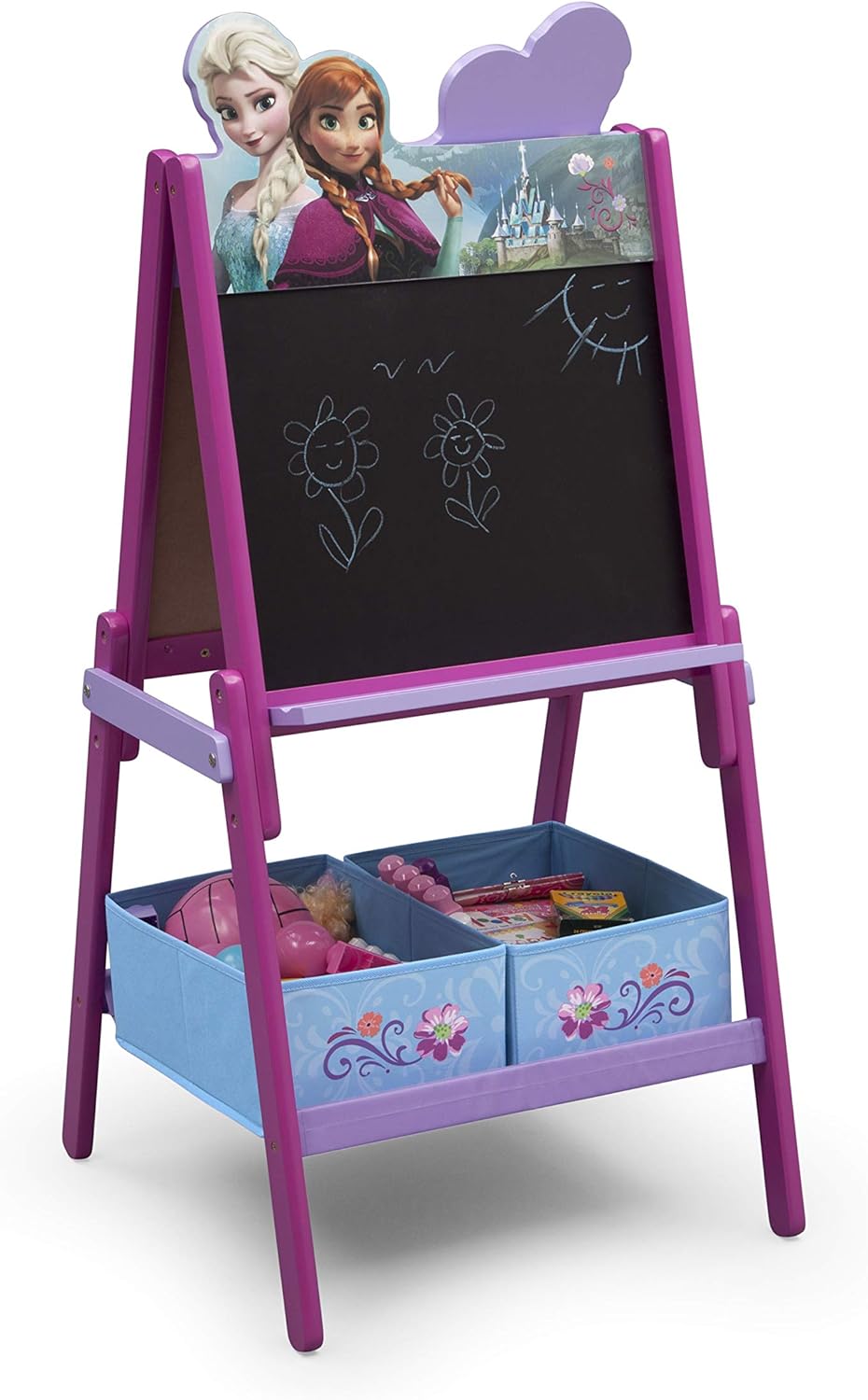 Featuring colorful graphics of Anna and Elsa, your little artist will love crafting masterpieces with her favorite princesses by her side. Two fabric storage bins underneath offer ample space to keep art supplies within easy reach, while the strong and sturdy wood construction ensures years of lasting use. Ideal for pretend play, homeschooling or remote learning.