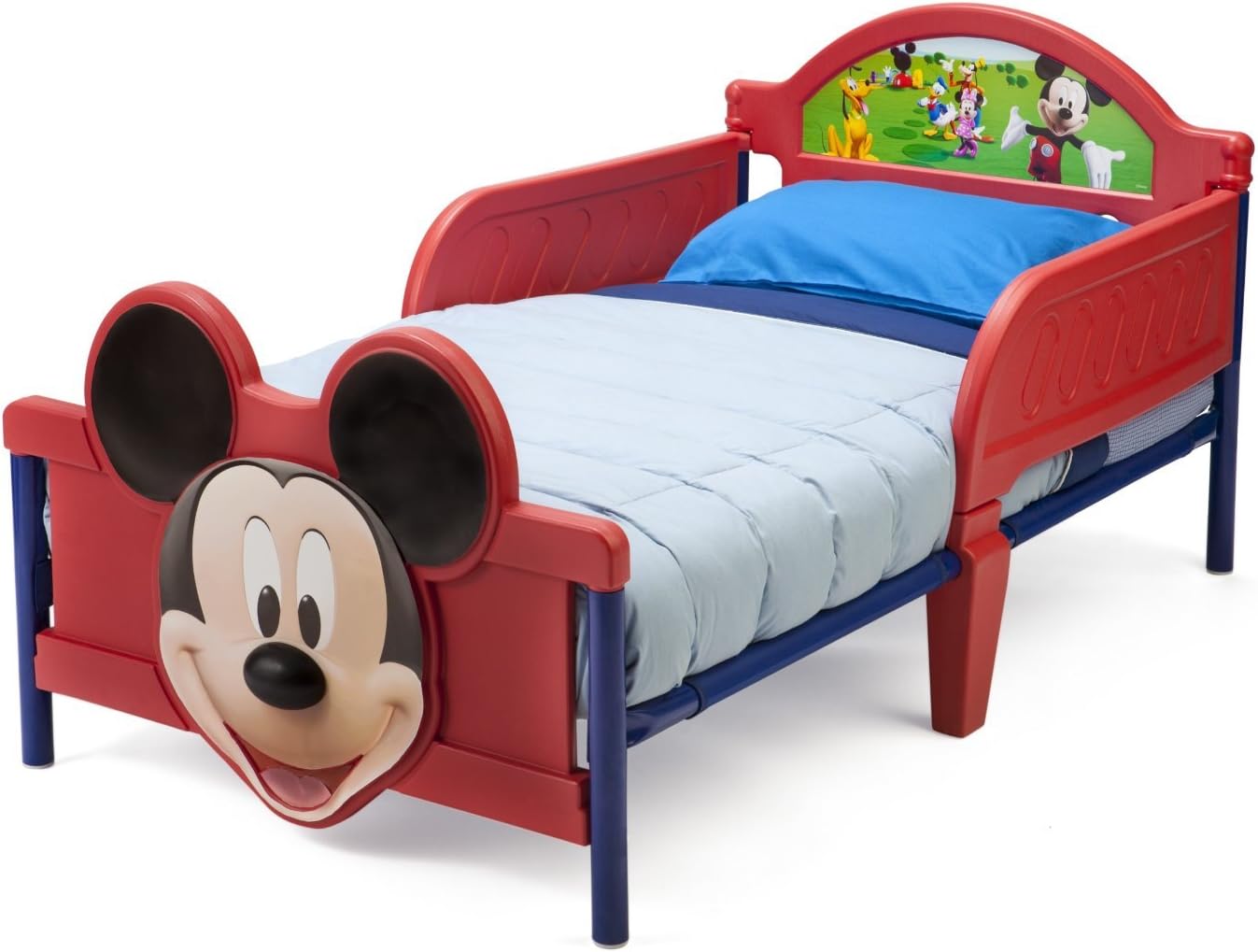 - For Little Mouseketeers : Decals featuring their favorite mouse and all his friends decorate the headboard and the footboard features Mickey Mouse in 3-D.