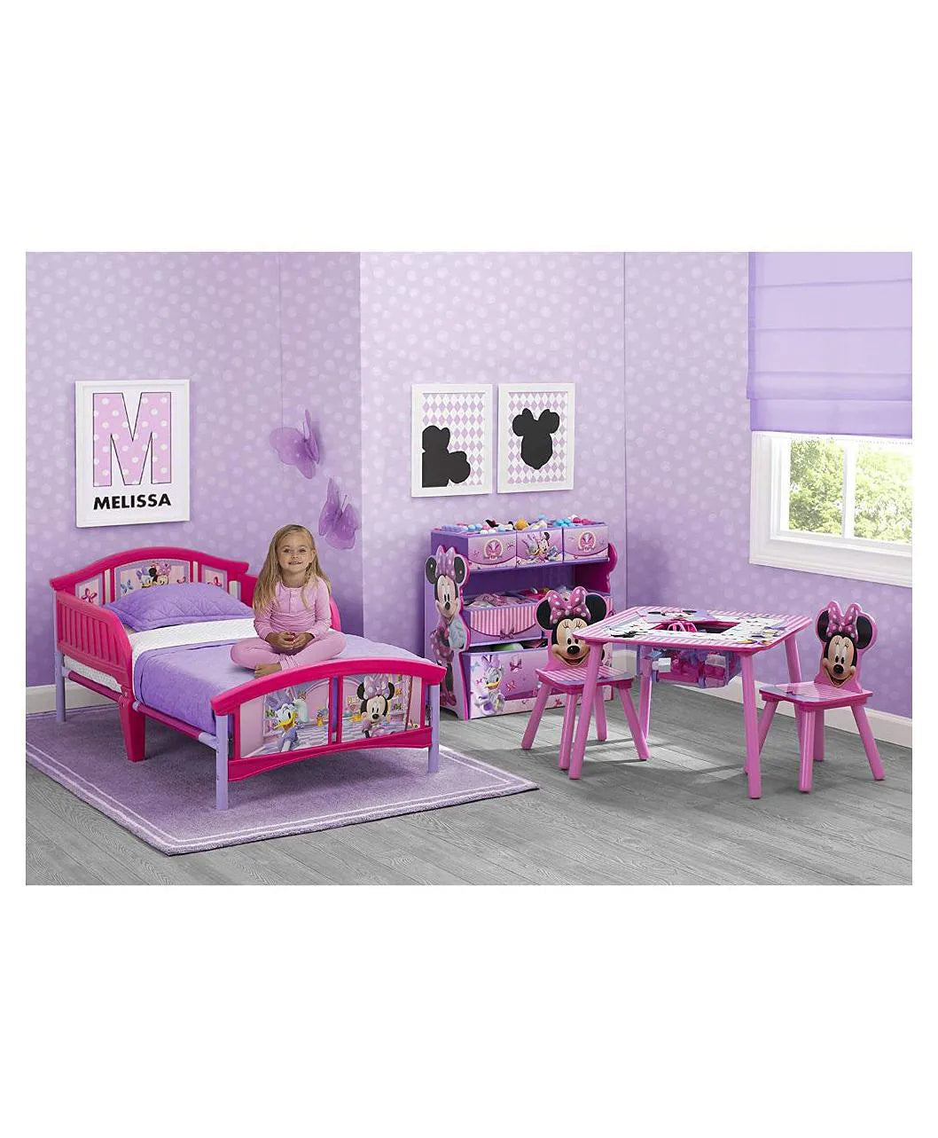 From top to toe, this Minnie Mouse Toddler Bed is simply the sweetest. Designed for little kids with big imaginations, this pink toddler bed features the perfect child-sized height and attached guardrails, so you can rest easy knowing your little one will sleep safely each night.