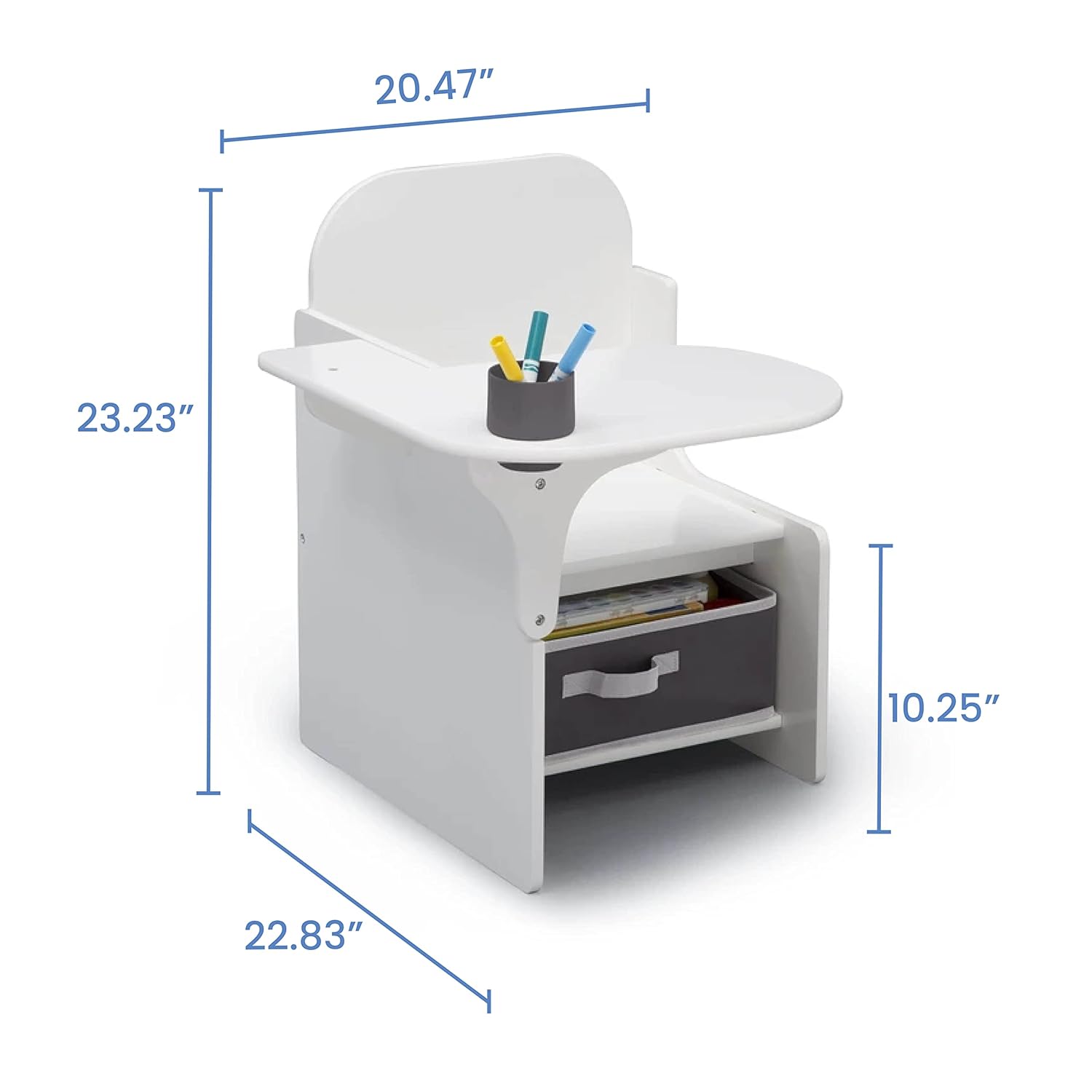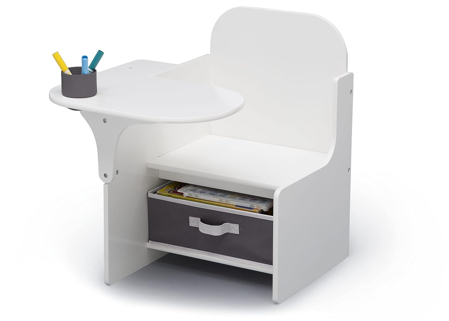 - TONS OF STORAGE: This Chair Desk features a removable cup holder for art supplies and fabric storage bin under the seat for books, toys or additional art supplies.