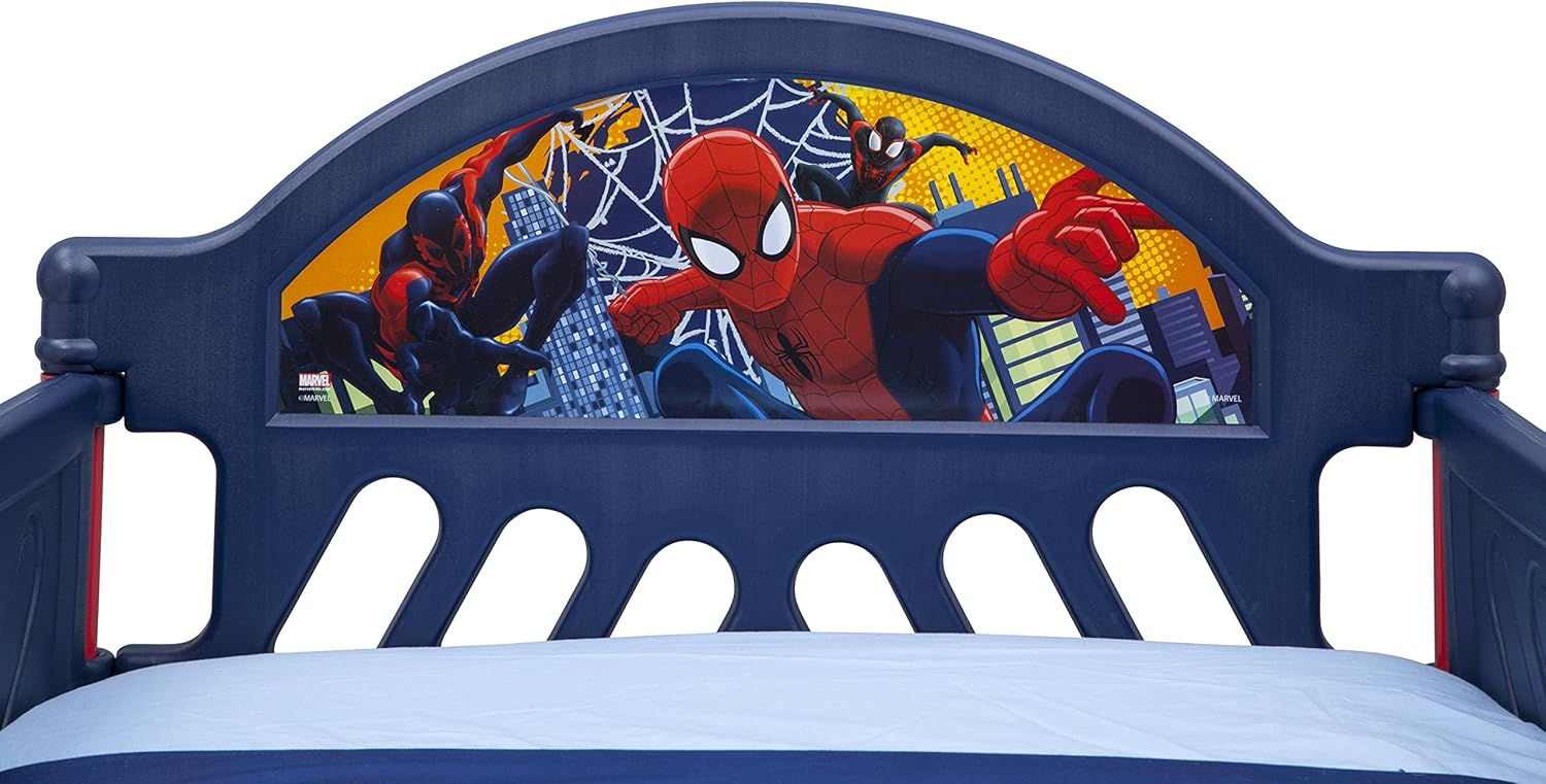 Designed to inspire action-packed dreams, this Spider-Man Plastic Toddler Bed from Delta Children is full of web-slinging fun. Featuring guardrails on both sides, plus colorful decals of your child's favorite superhero at the headboard and footboard, it's a must for any Spidey fan.