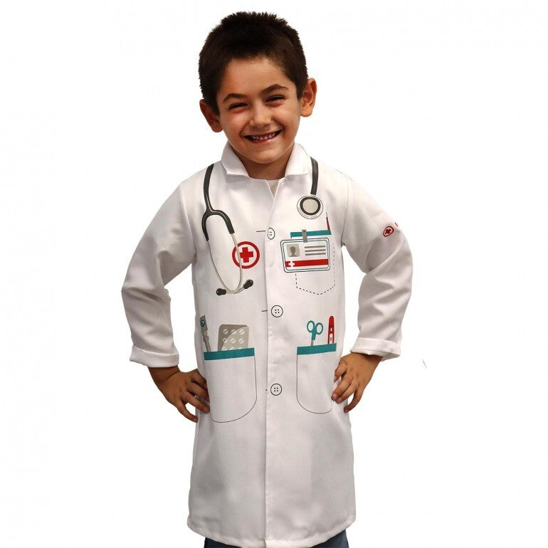 - Authentic Design: Our Doctor Costume is designed to replicate the look of a real doctor’s coat, complete with printed medical instruments and accessories. From stethoscopes to syringes, children will feel like genuine healthcare professionals as they play and pretend to care for their patients.