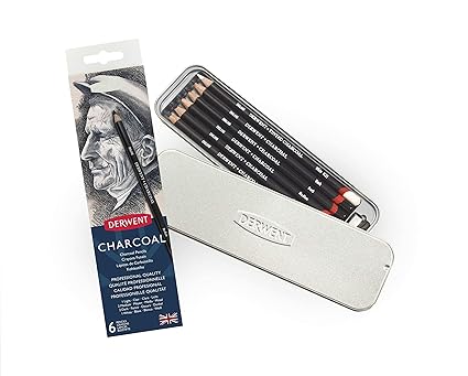 Included Components Derwent Charcoal Pencils Tin (Set of 6)