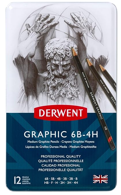 Included Components : Derwent Graphic Medium Graphite Pencils, 6B-4H (Set of 12)
