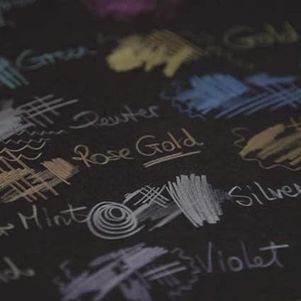 - Shimmering, highly metallic pencils that blend beautifully together to create vivid and striking metallic effects, particularly on dark paper
